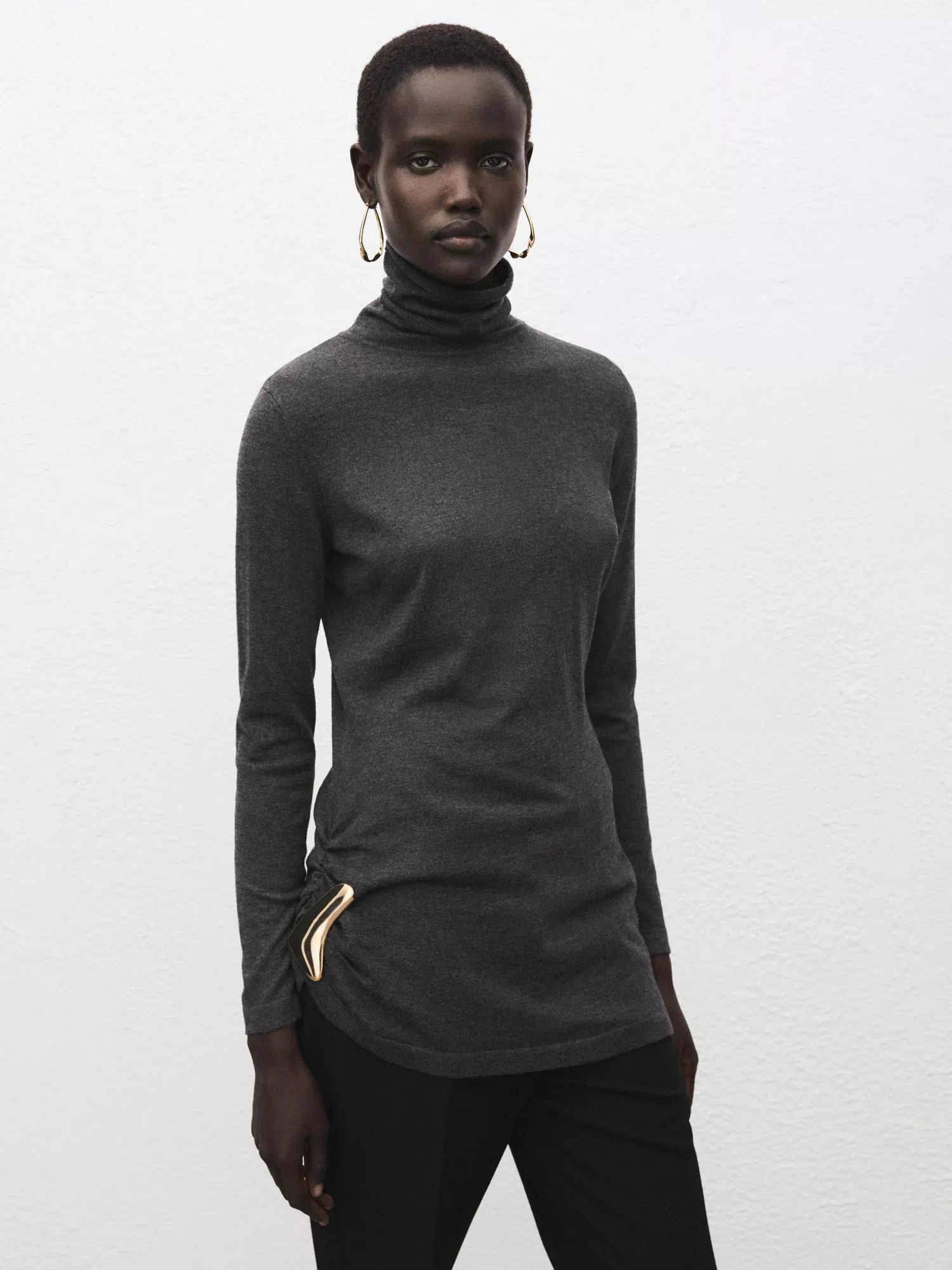 A medium-weight jumper from Mango. Designed with a soft turtleneck, long sleeves and a shiny gold-toned brooch detail, it keeps you cosy.