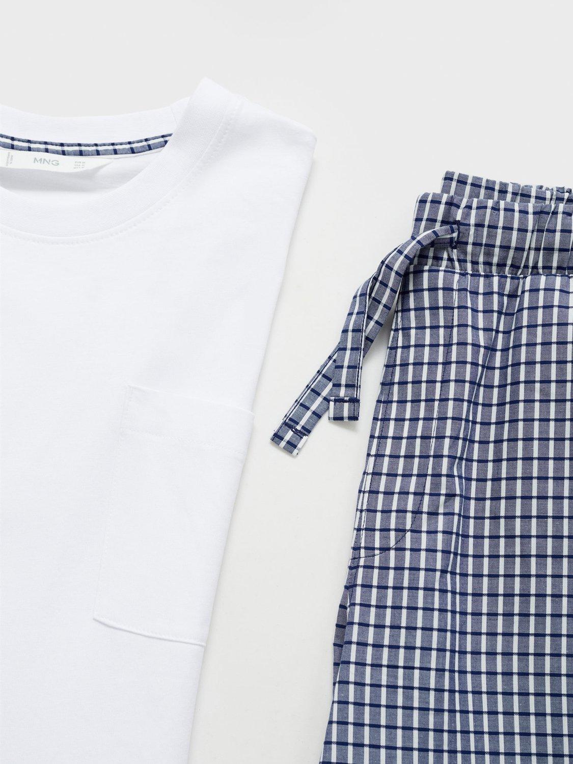 With a plain top and check drawstring bottoms, this regular fit pyjama set from Mango is crafted from pure cotton - because is there anything better to set you up for a comfy sleep?
