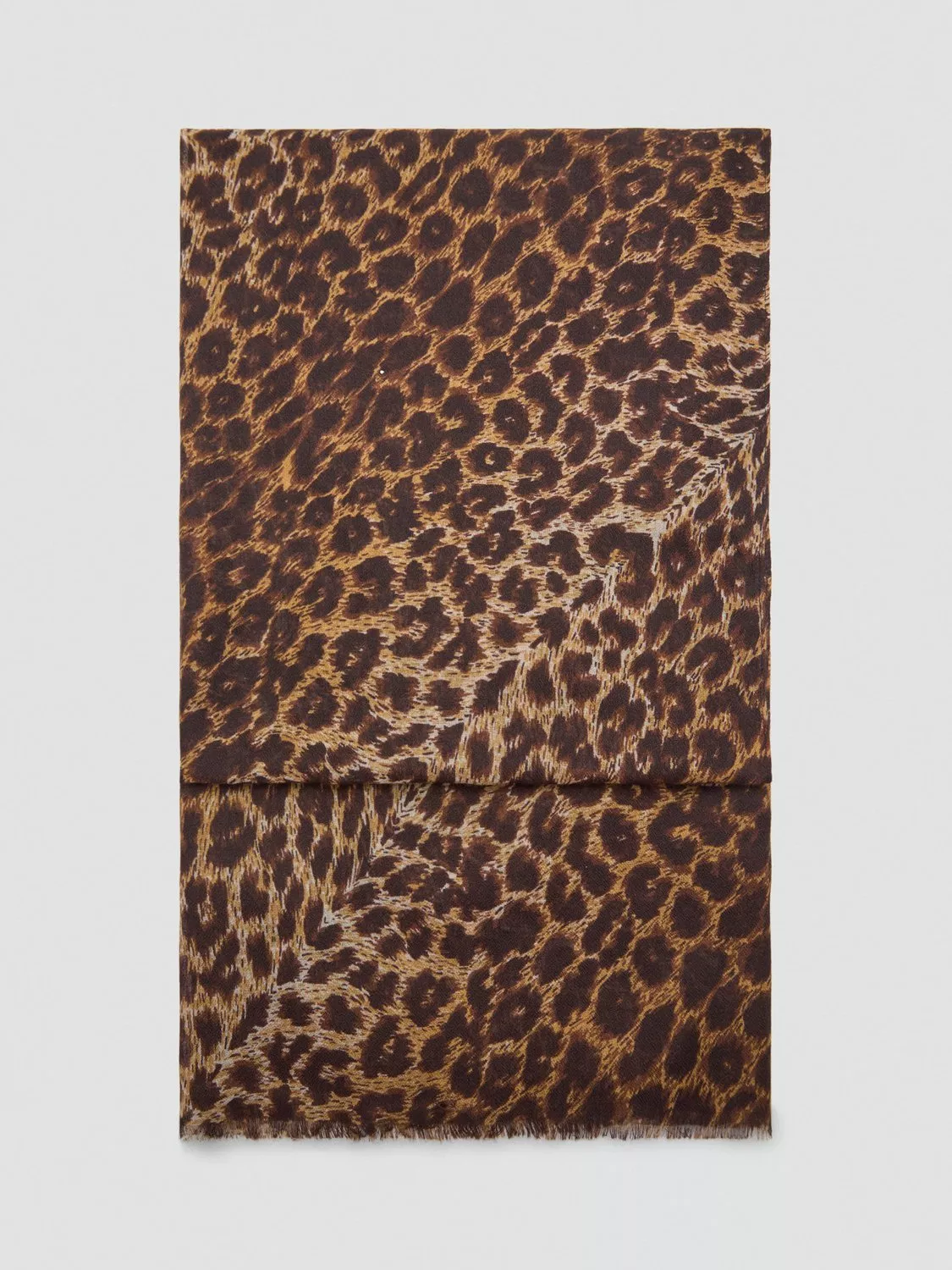 Lightweight and versatile, this frayed animal print scarf is perfect for layering or tying in creative ways to reflect your unique style.