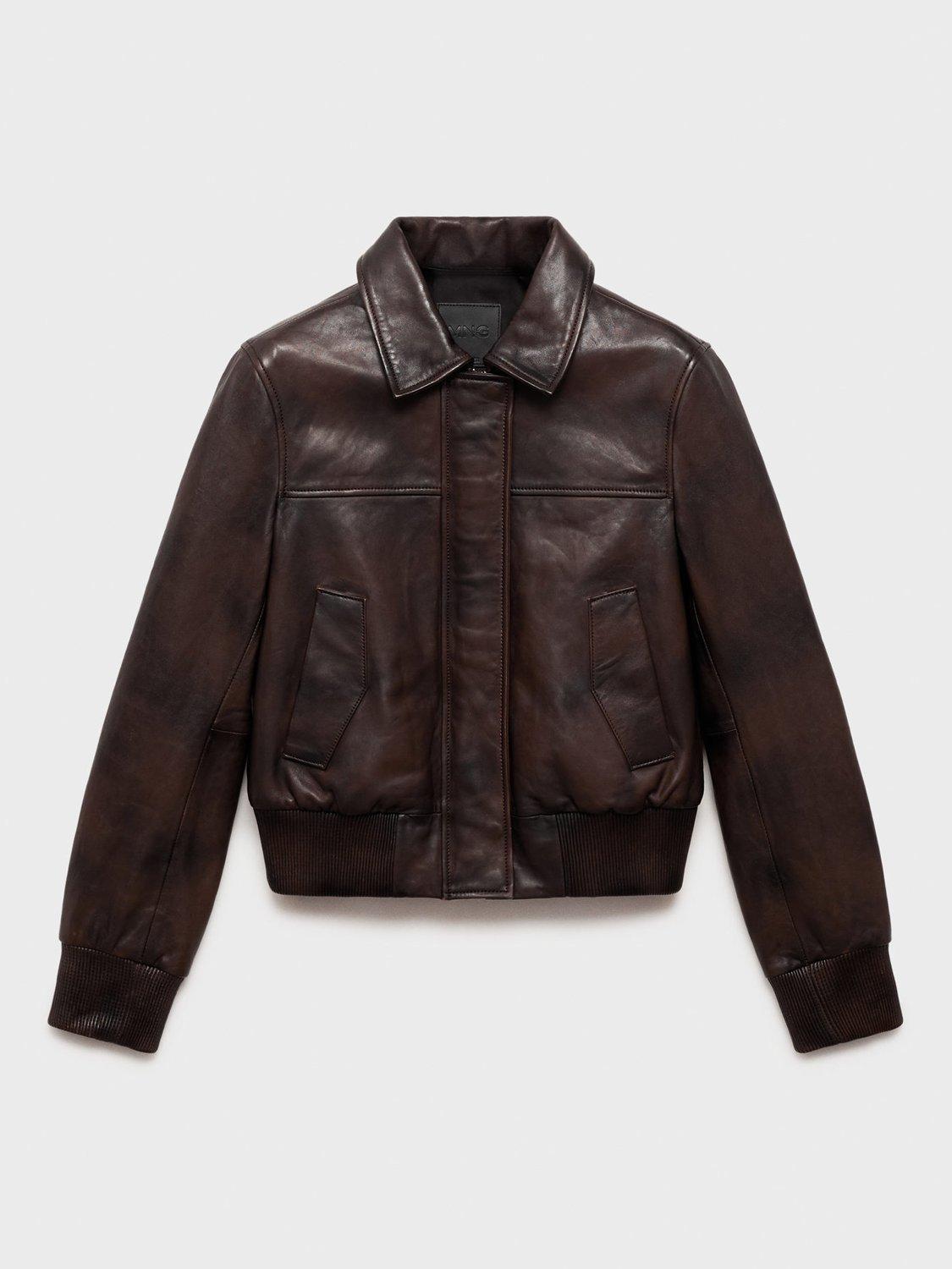 Carved from pure leather to a bomber silhouette, this jacket from Mango zips through the front and is bound to make a statement whatever the weather.