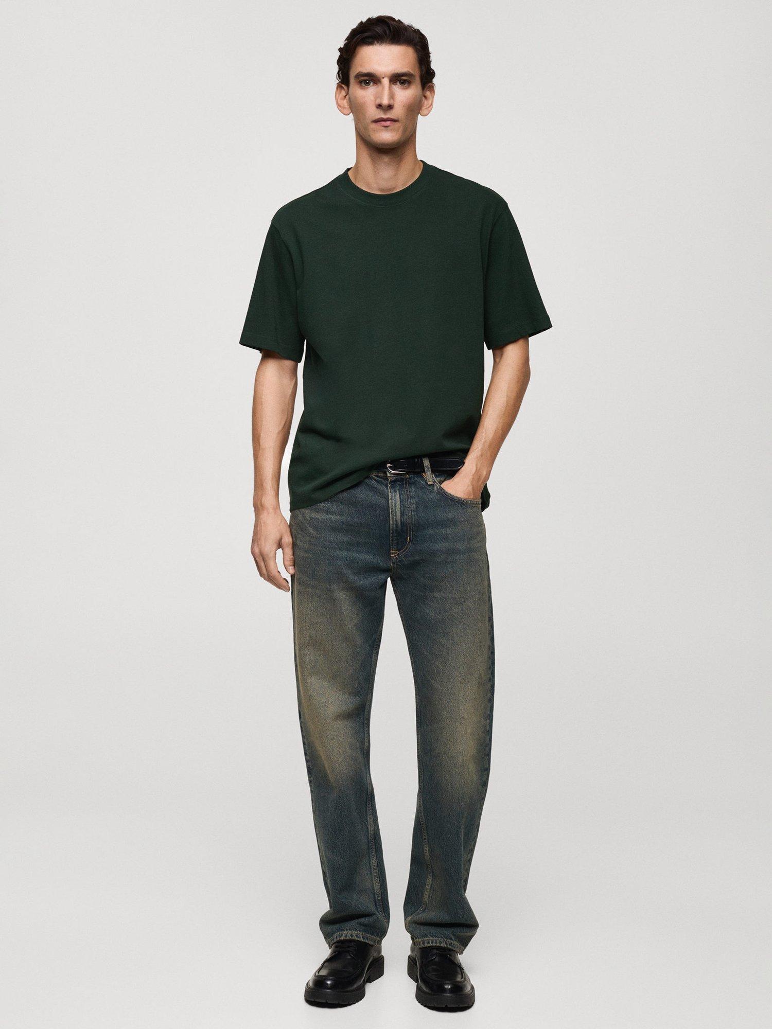 MangoAnouk Cotton Regular Fit Tee, Green