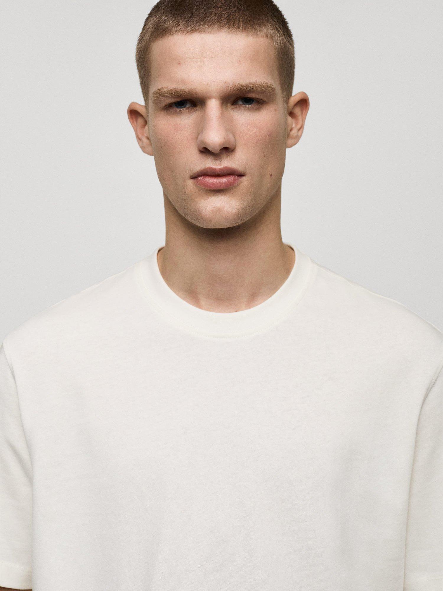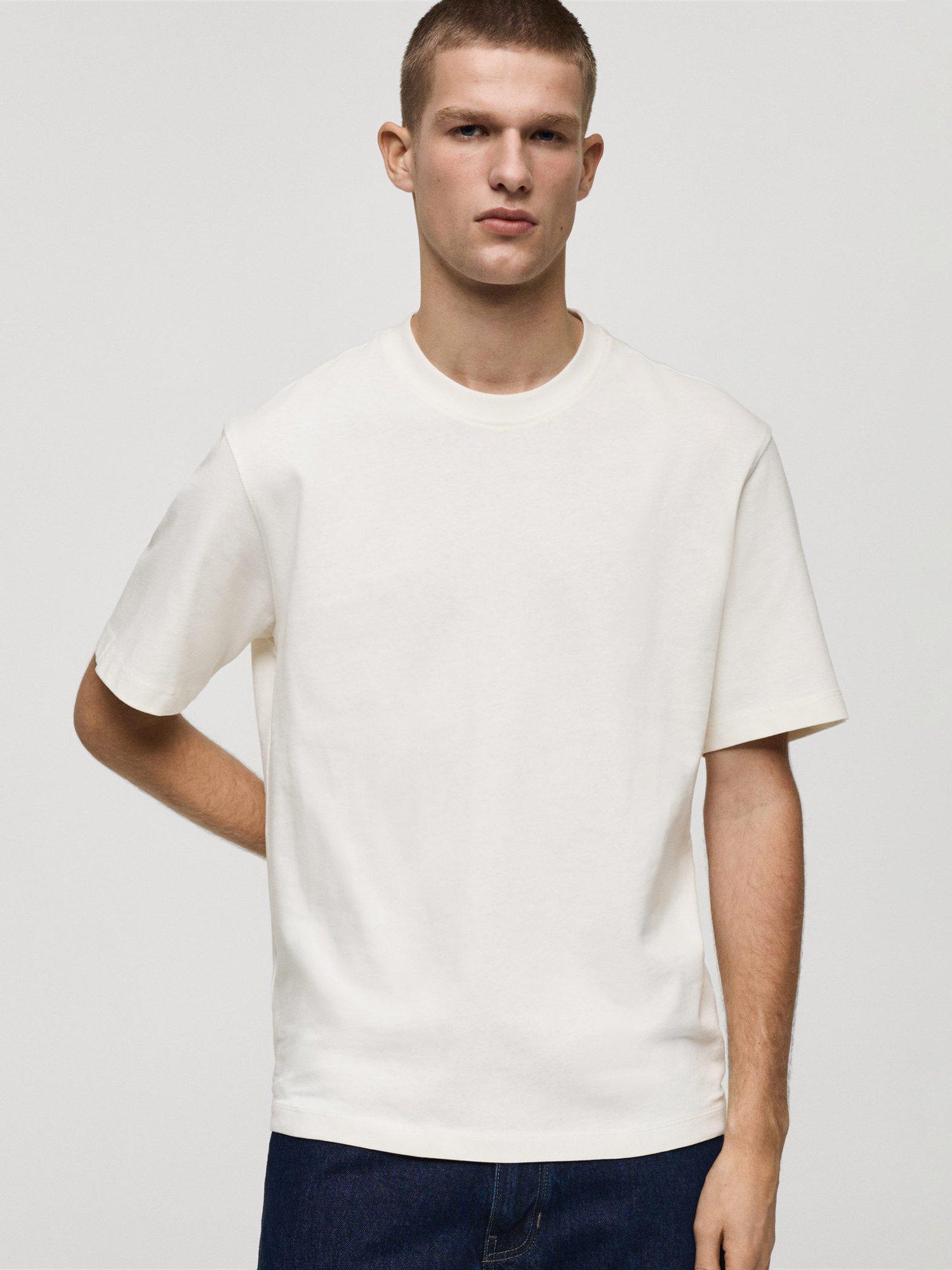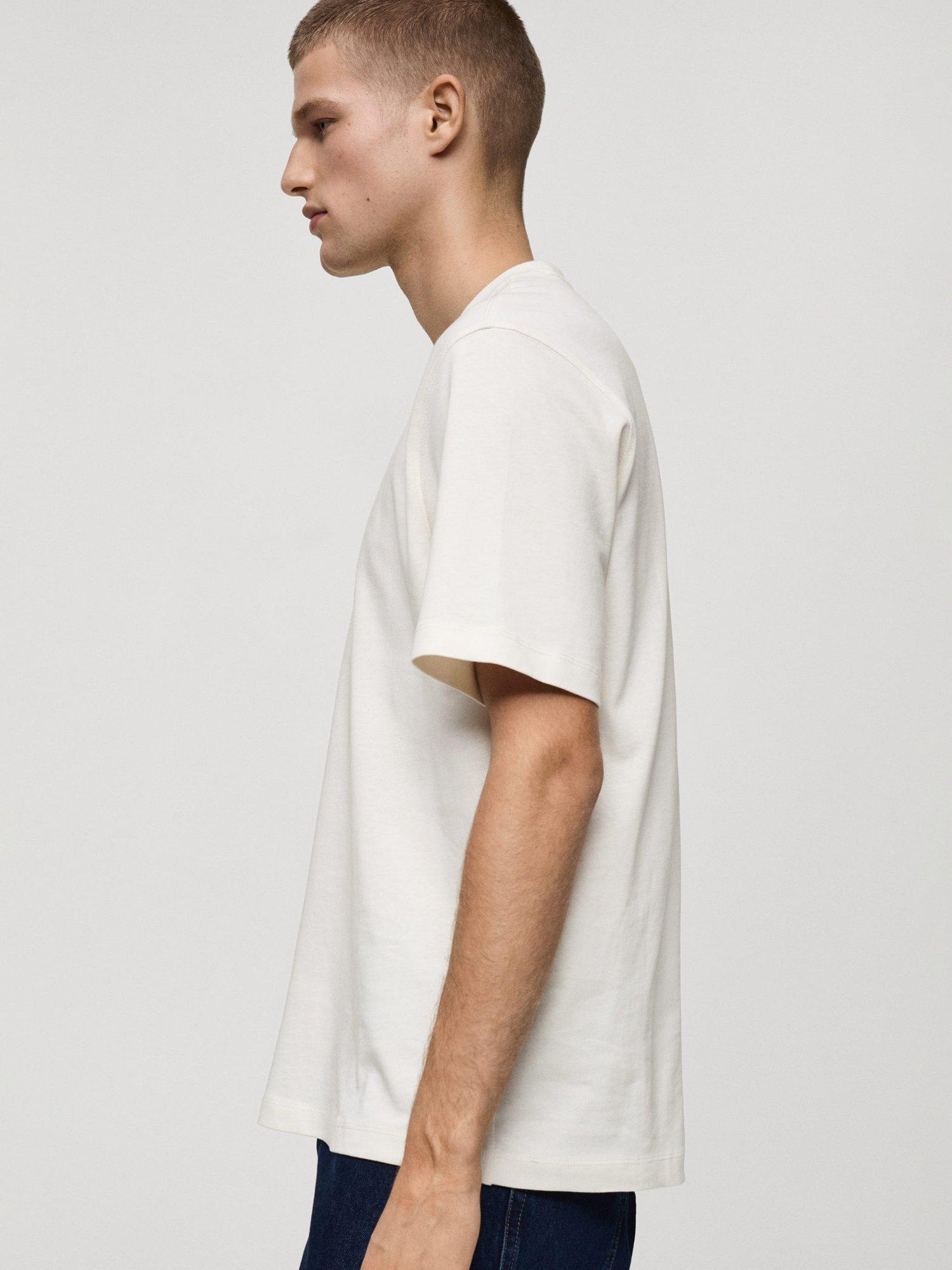 MangoAnouk Cotton Regular Fit Tee, Natural White