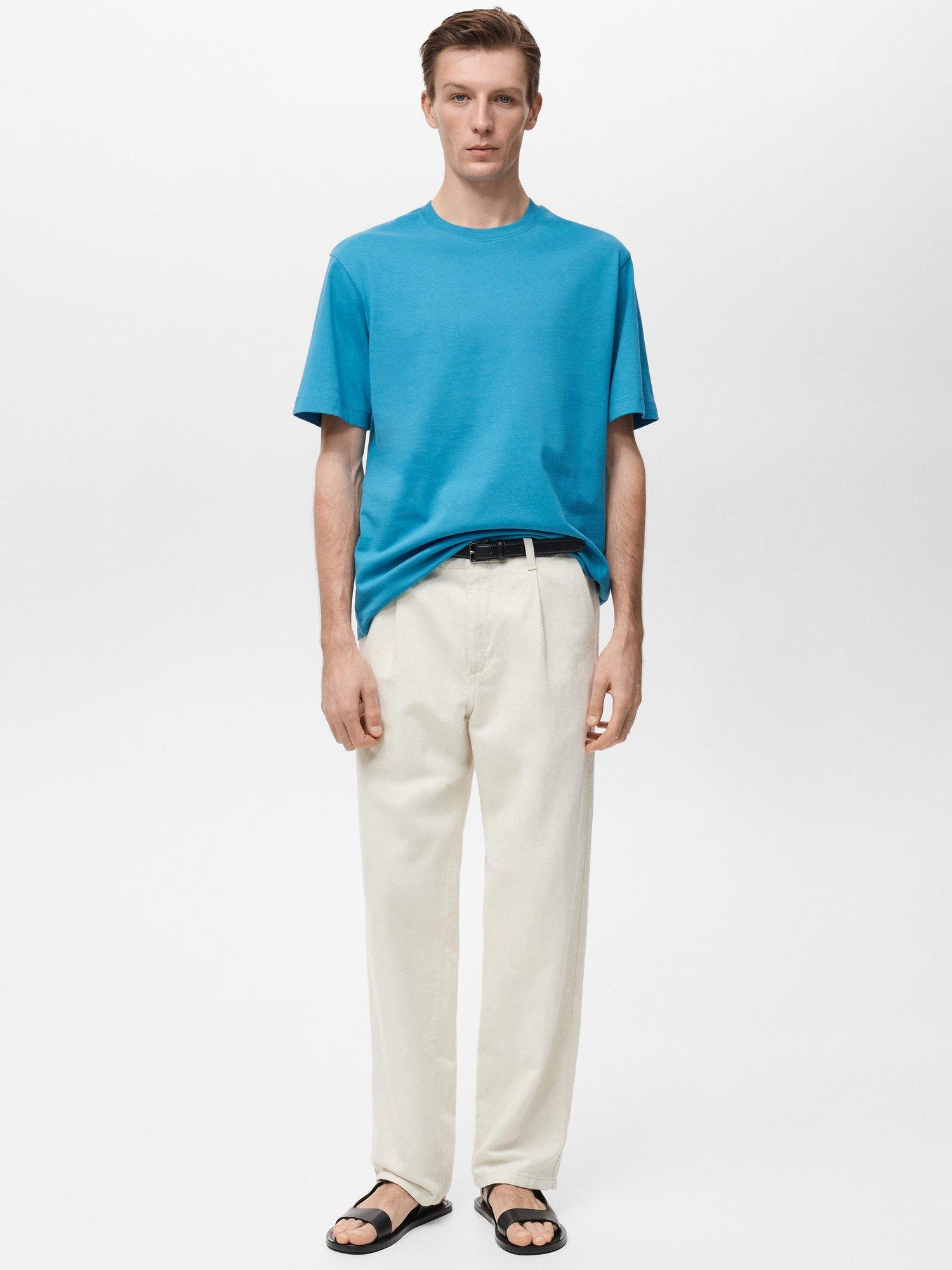 MangoAnouk Cotton T-Shirt, Turquoise, XXL