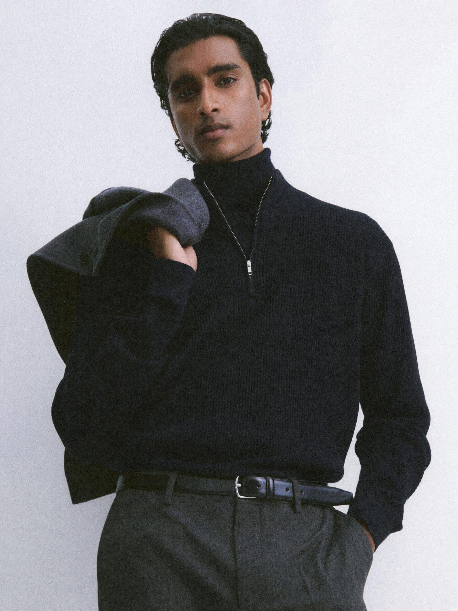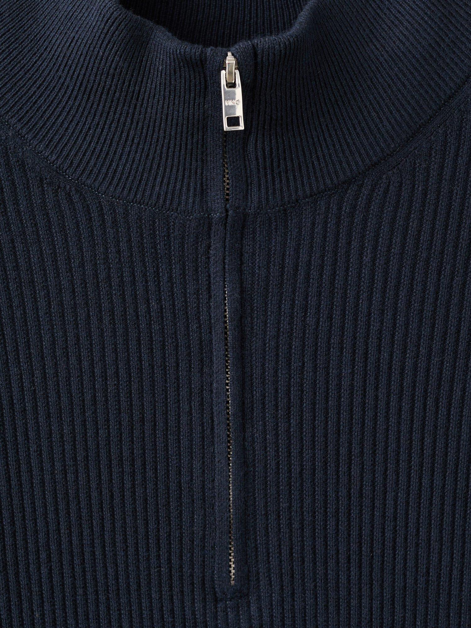 Fine knit structured jumper with a zip neck closure. The perfect layering piece for either work or leisure.