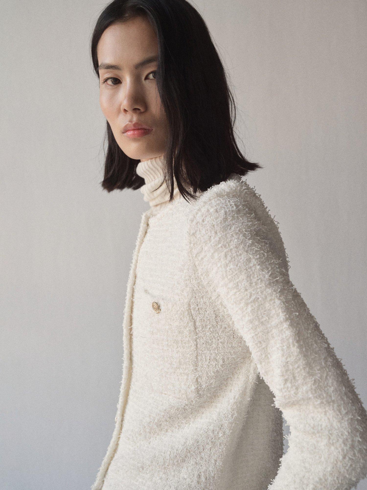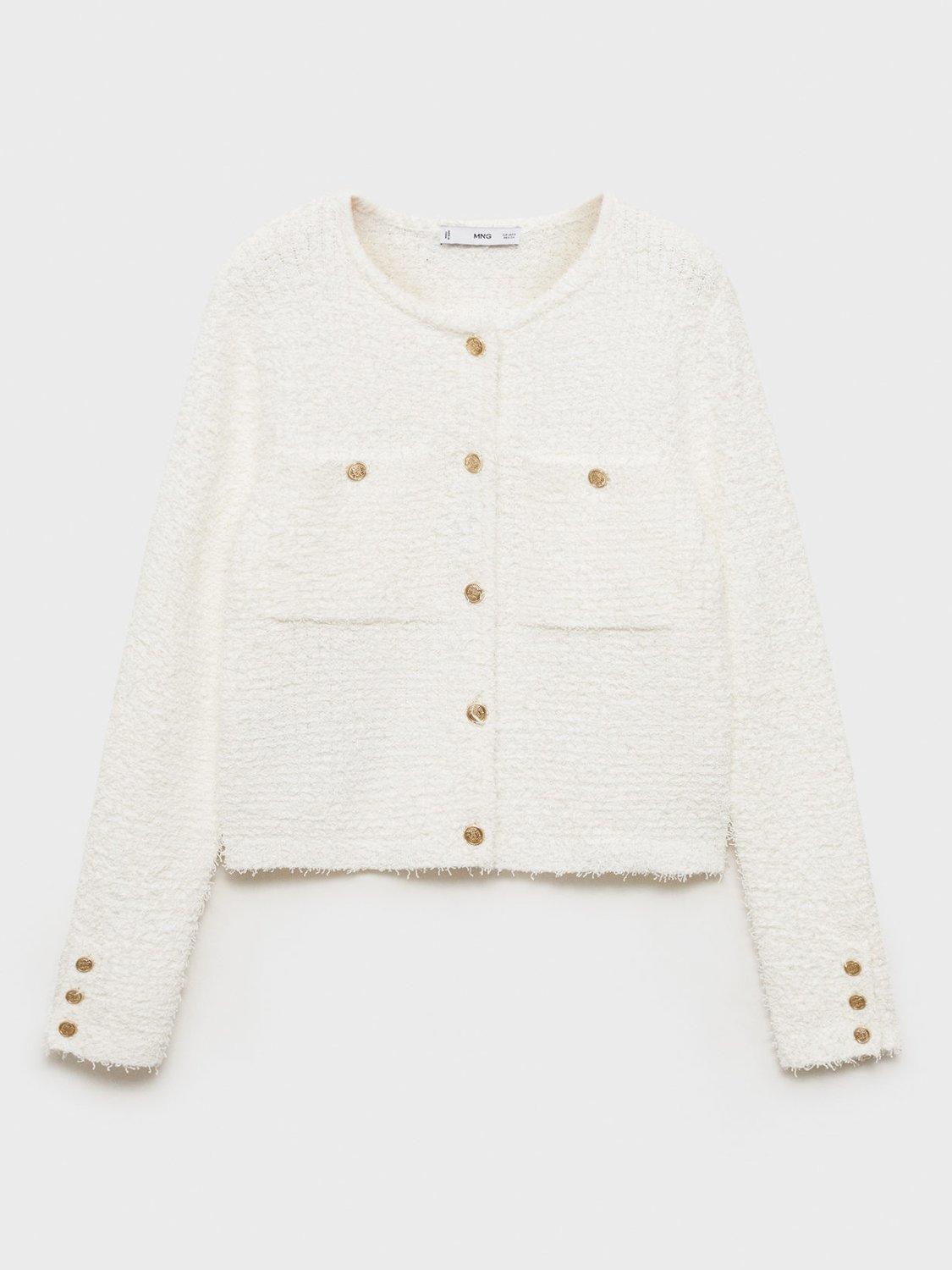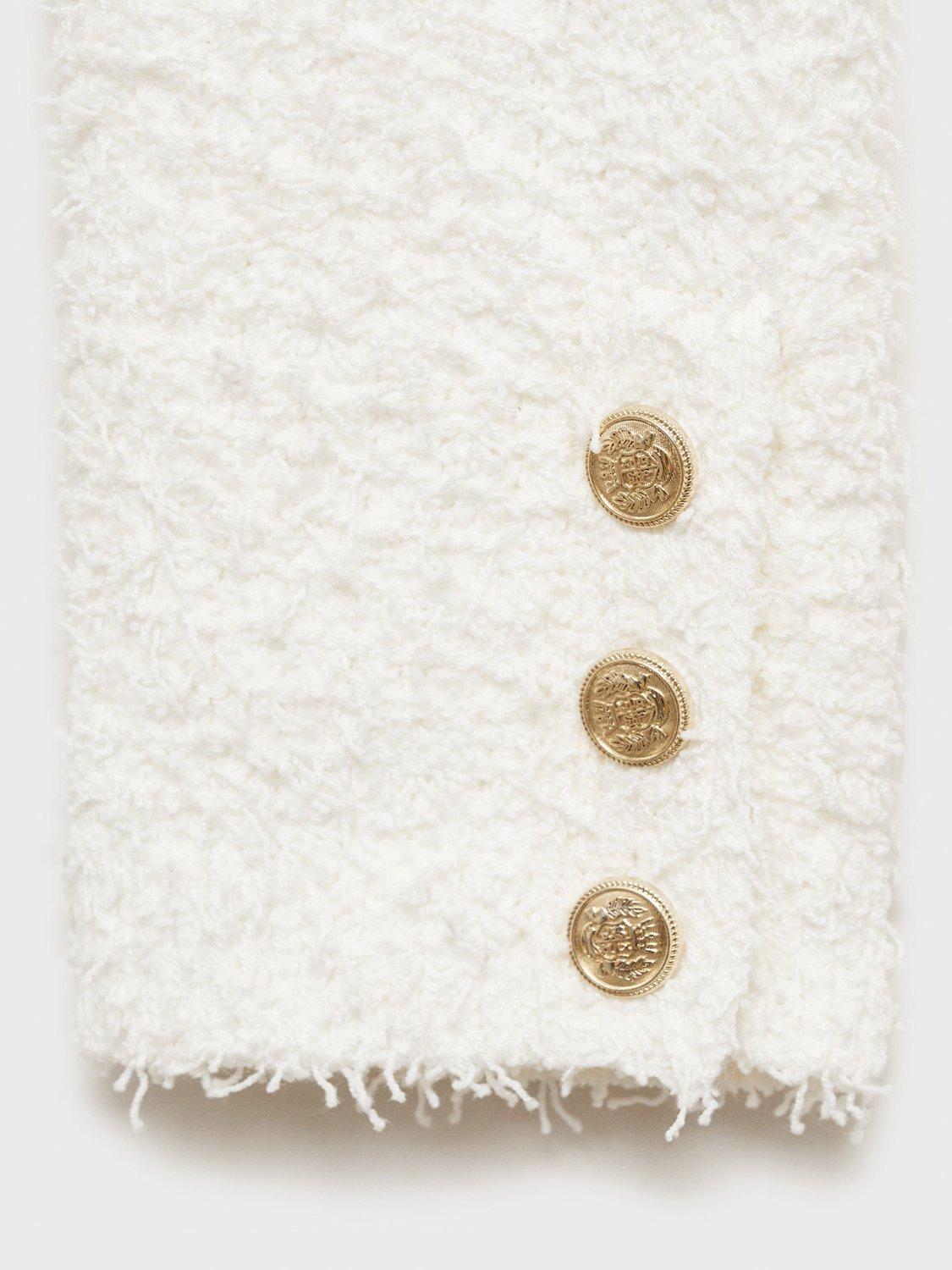 Keeping you cosy with its style, this slim fitting tweed jacket by Mango sits at the hips. Neatly framed with a round neckline, it's designed with statement but functional jewel button detailing.