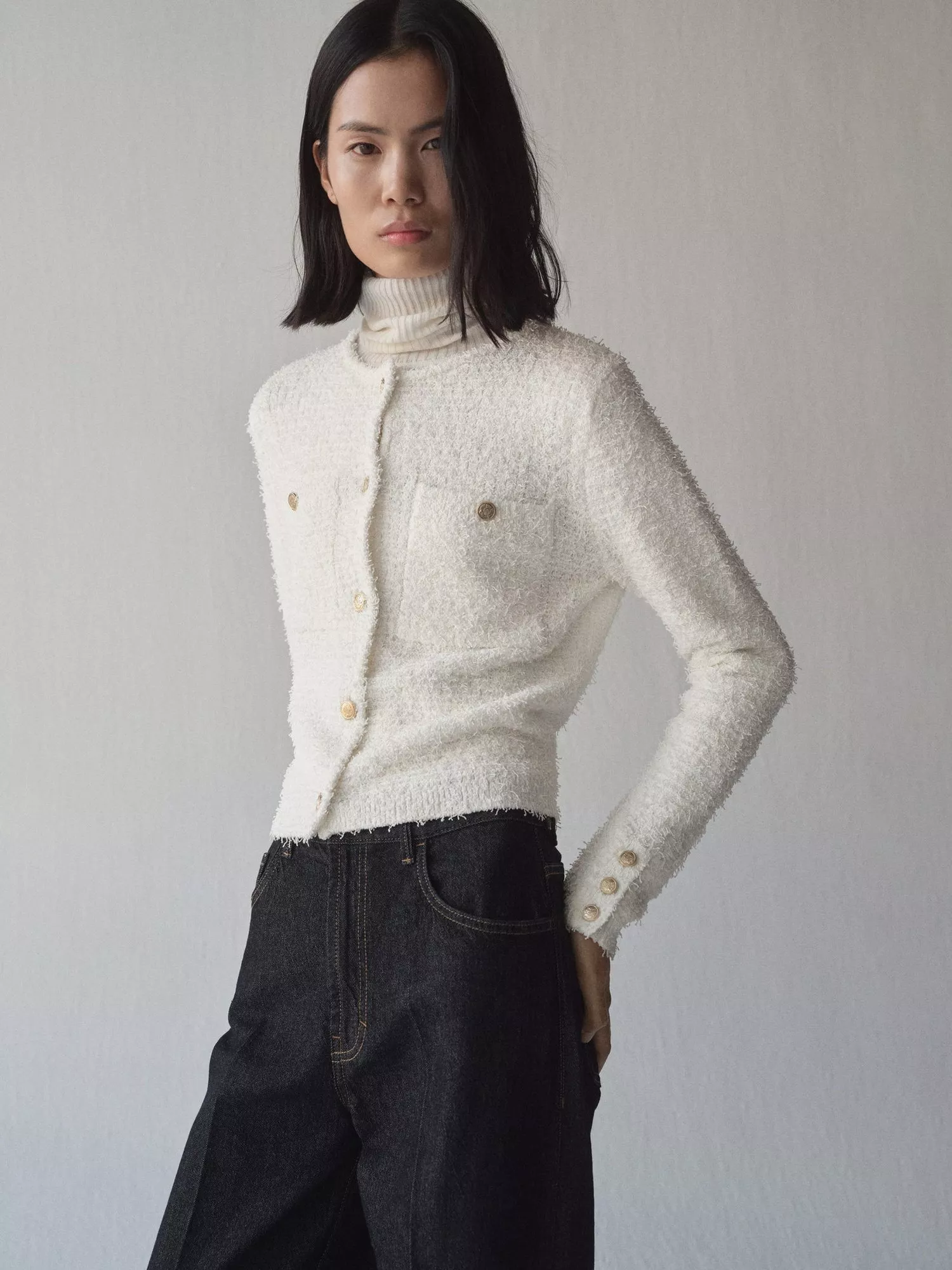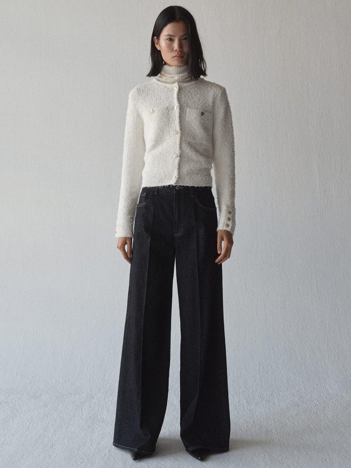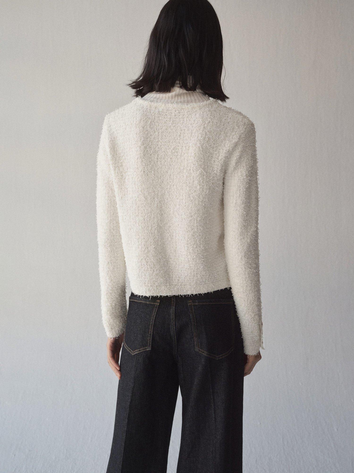 Keeping you cosy with its style, this slim fitting tweed jacket by Mango sits at the hips. Neatly framed with a round neckline, it's designed with statement but functional jewel button detailing.
