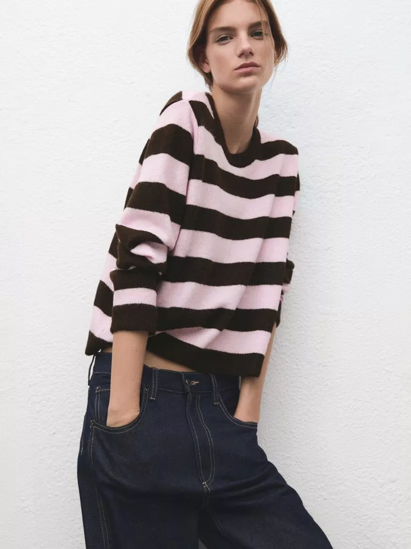 This striped round-neck jumper brings warmth to your everyday outfits. Its medium weight makes it perfect for layering, and the relaxed fit ensures comfort whether you are at home or on the go.