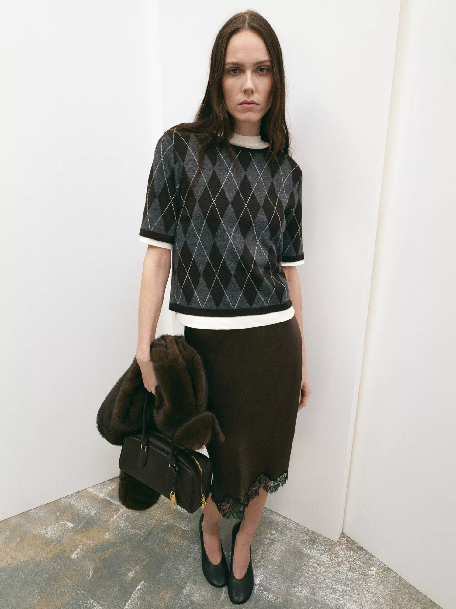 Created from a wool blend, this mid-weight round neck jumper by Mango has an intriguing, geometric design.