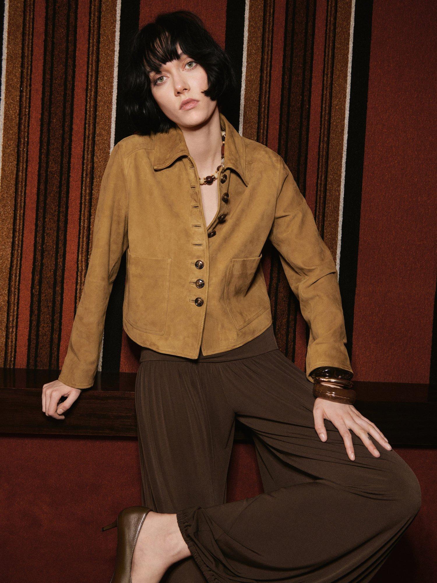 Collared for a confident feel, it will add texture to your look with its suede fabrication.
