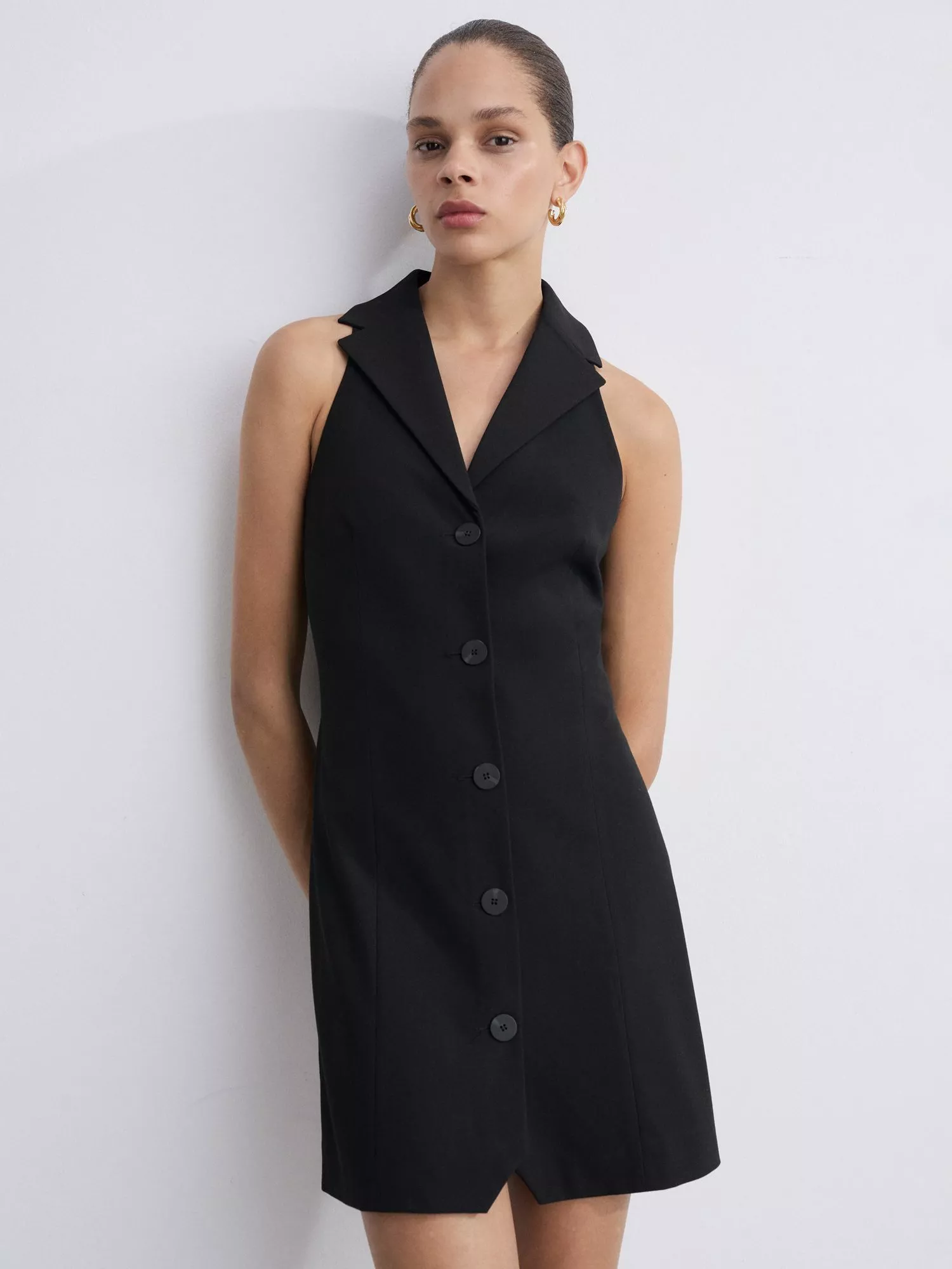 Tailored to a smart brief, this thigh-grazing dress from Mango is confidently cut with lapels and a button front.