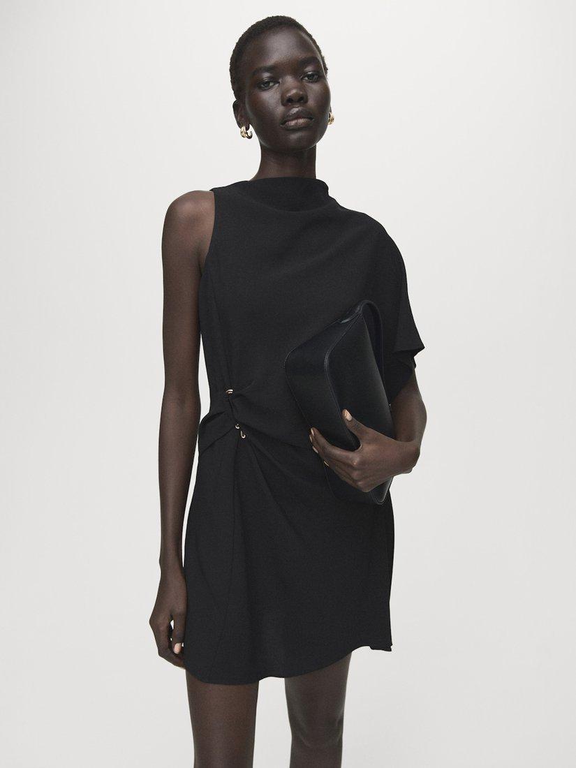 Ramp up the drama with some draping. This sleeveless mini dress by Mango has a high neckline and a mix-and-match ready plain colour.