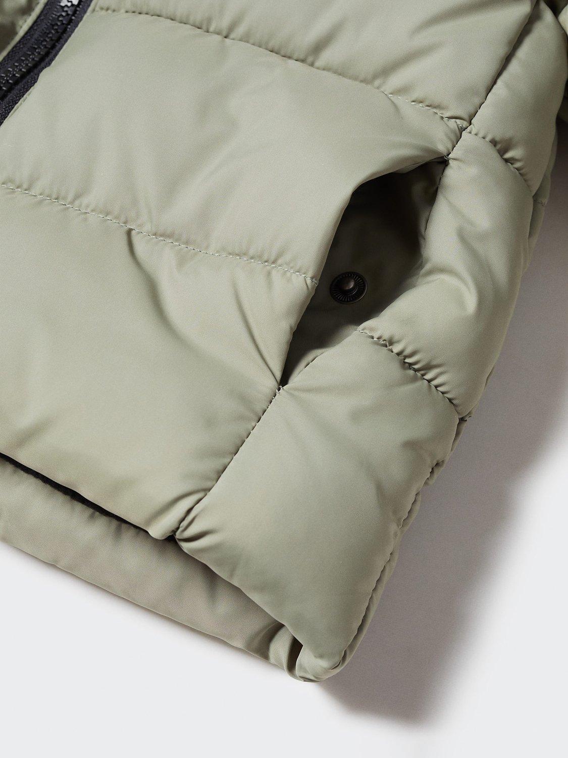Warm them up in this cosy, quilted jacket. Comes with a useful name label on the inside.