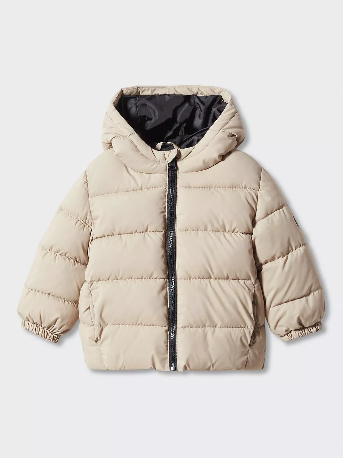 Warm them up in this cosy, quilted jacket. Comes with a useful name label on the inside.