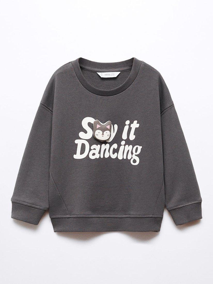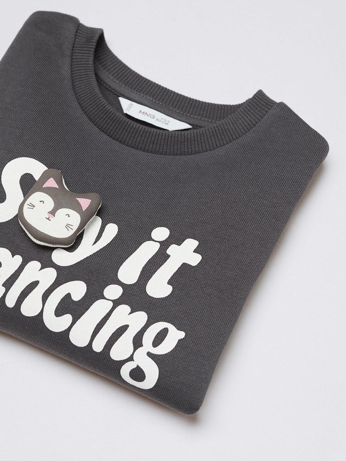 MangoBaby Animated Cat Slogan Sweatshirt, Charcoal