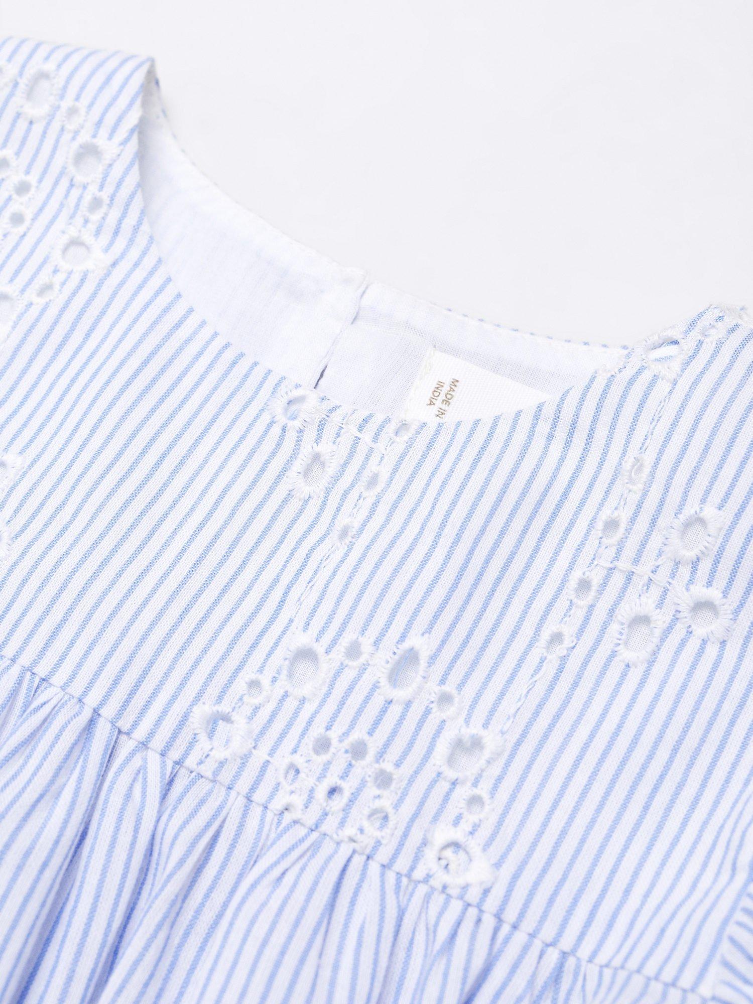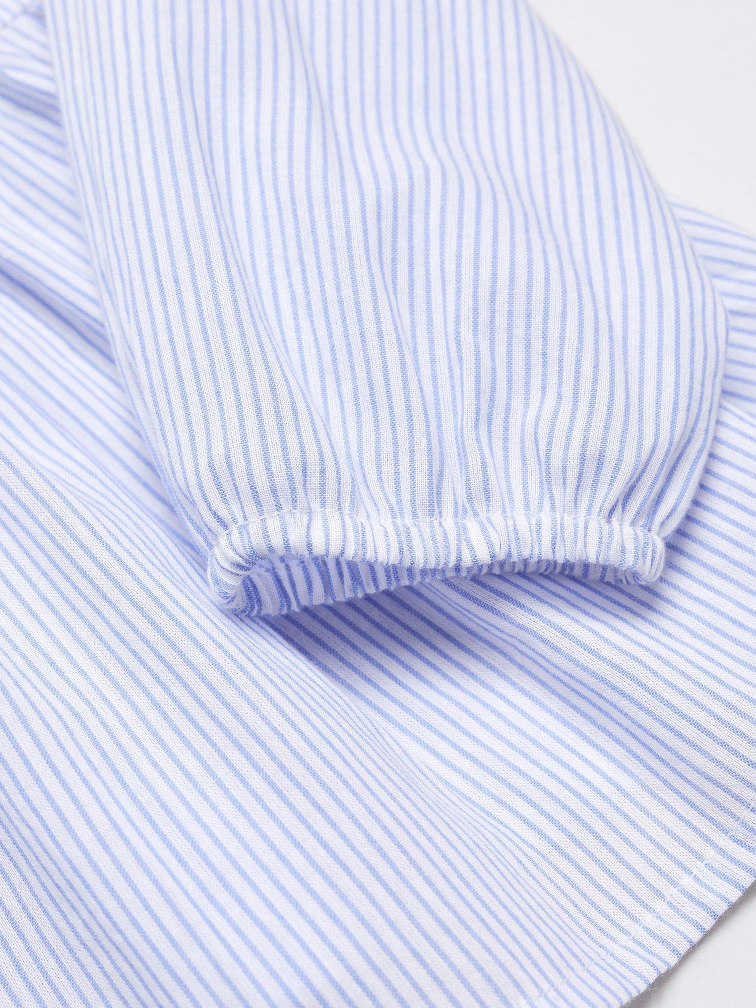 MangoBaby Asia Embroidered Stripe Blouse, Light Pastel Blue