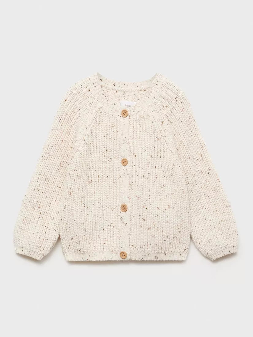 MangoBaby Augusta Flecked Cardigan, Light Beige