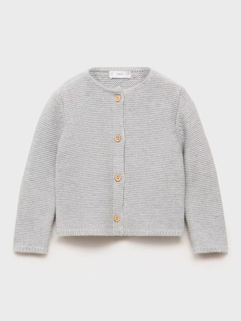 MangoBaby Cotton Blend Long Sleeved Cardigan, Medium Grey