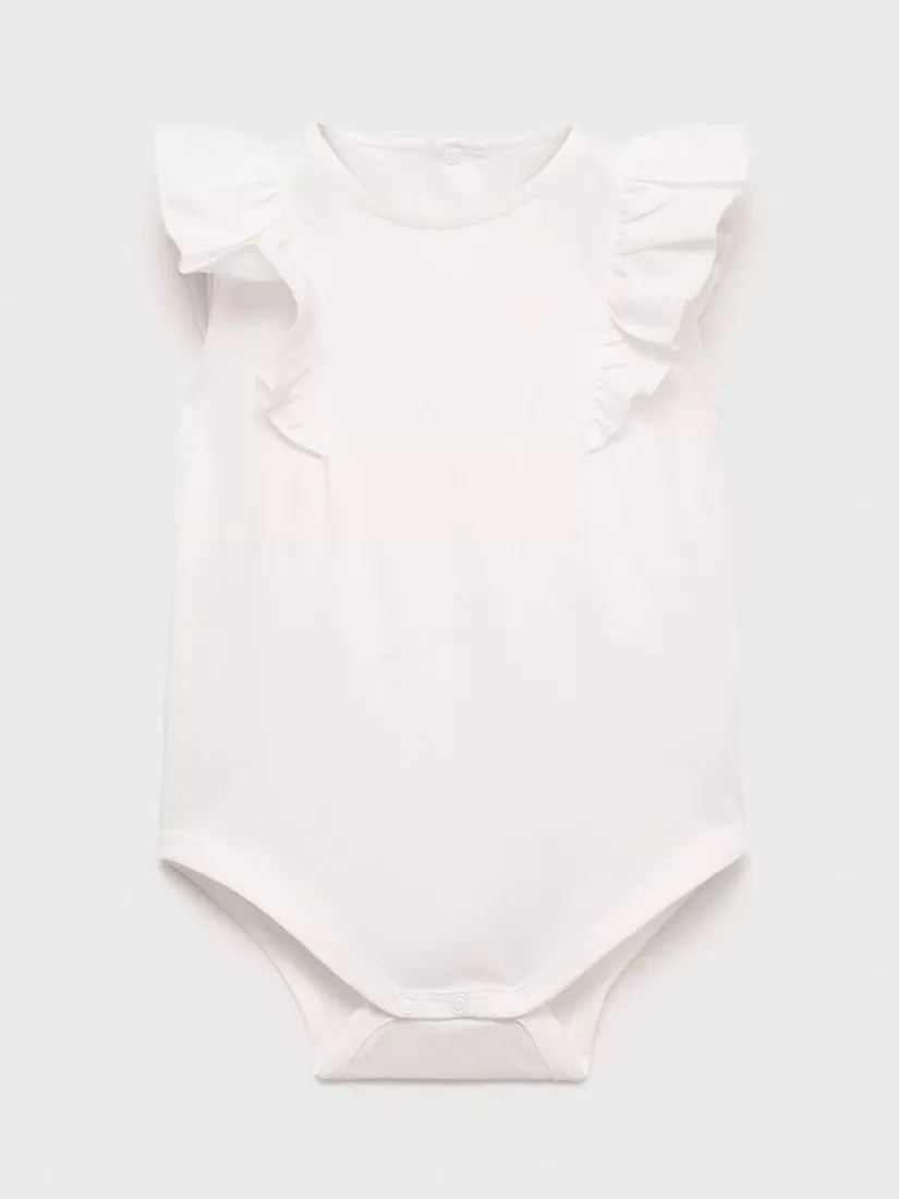 Ideal for everyday, this bodysuit from Mango is crafted from soft, stretchy cotton and designed with a round neck, cute frill detailing on the shoulders and press-stud fastenings for easy on and off.