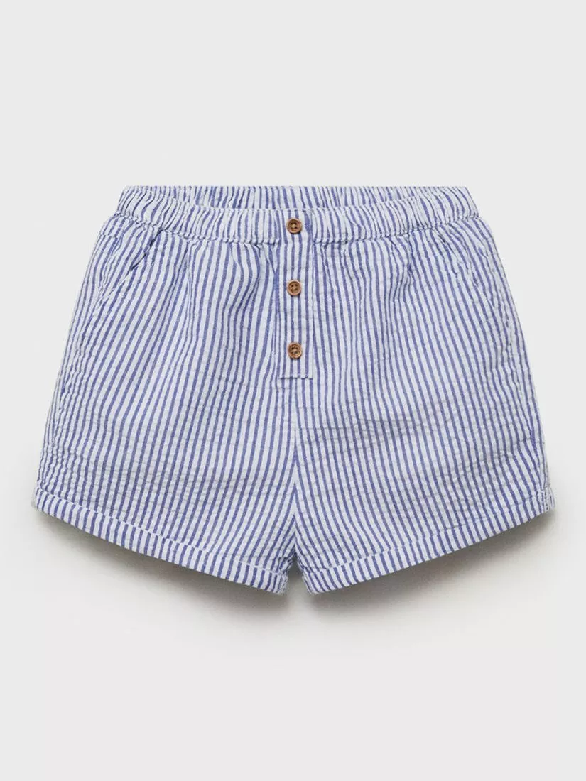 A pair of striped cotton shorts from Mango, made with an elasticated waist, side pockets and decorative button details.