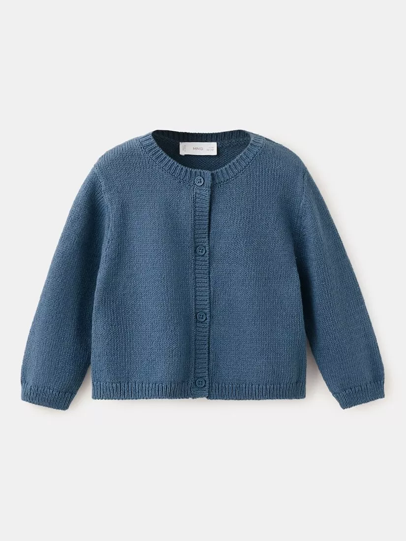 MangoBaby Crew Neck Button Down Cardigan, Blue