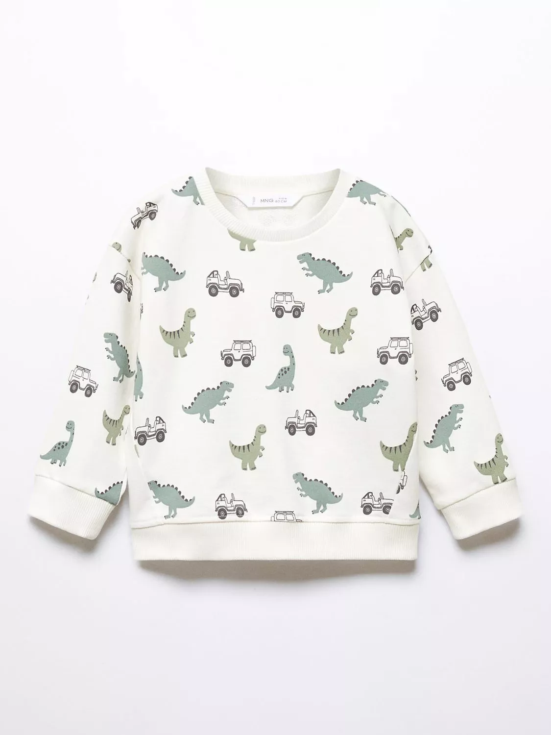 MangoBaby Dino Print Sweatshirt, Natural White