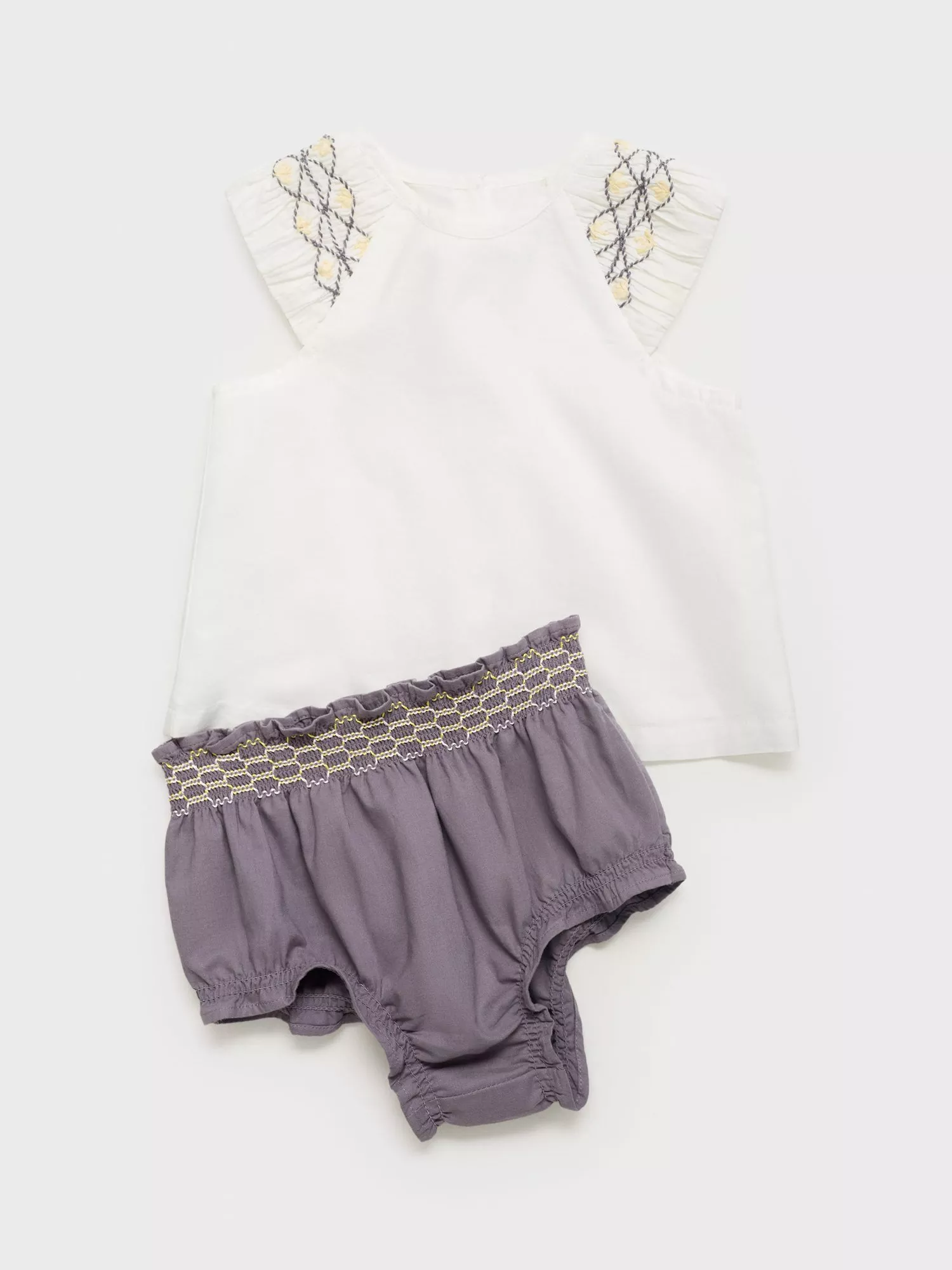 A super soft and versatile addition to baby's wardrobe is this cap sleeved t-shirt by Mango. Crafted from super soft cotton fabric so it's kind to delicate skin, it's embroidered with playful imagery.