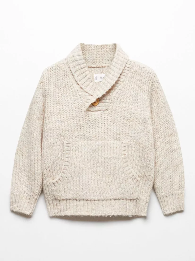 MangoBaby Jacob Knitted Pouch Pocket Jumper, Pastel Brown