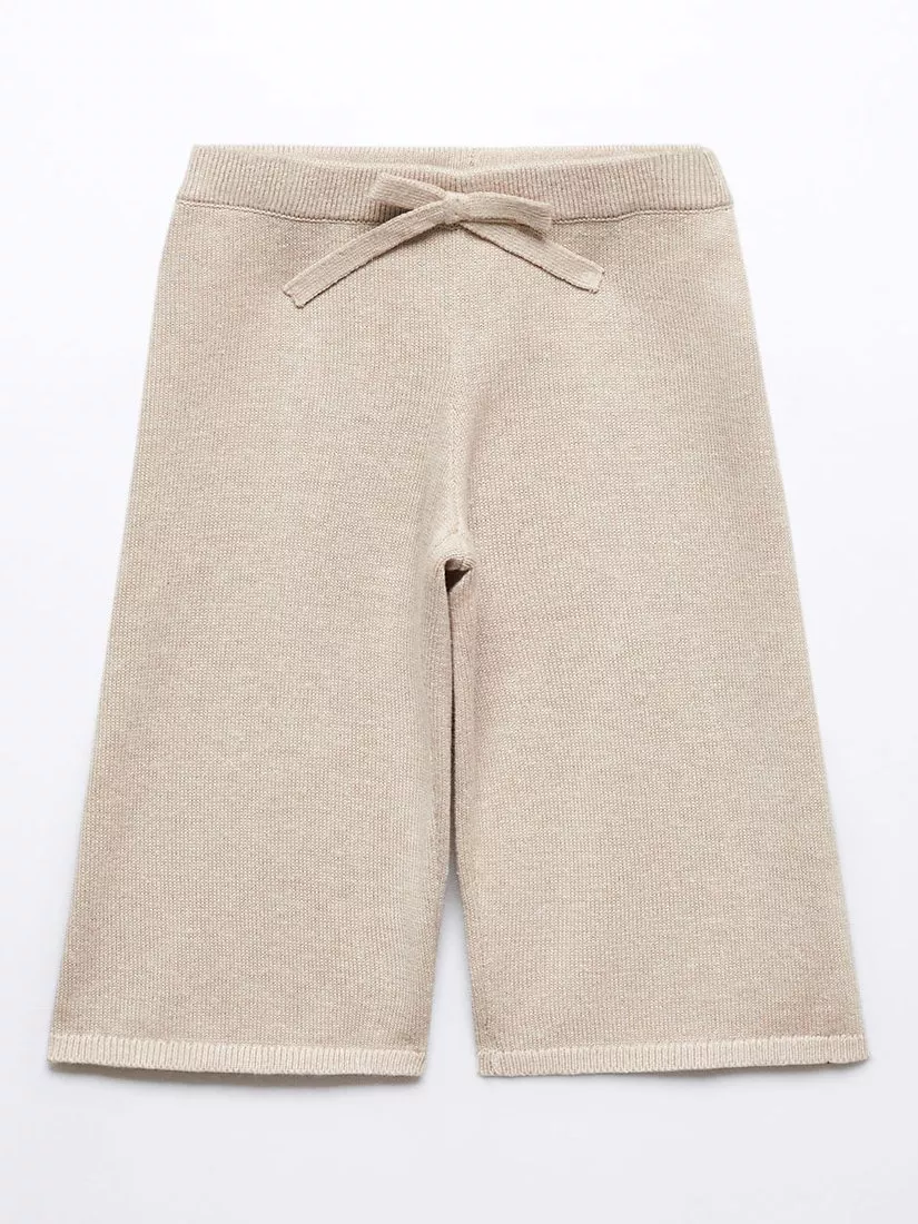 Fine knit, cotton blend trousers designed in a cropped, culotte design. Finished with a comfy elasticated waist and decorative bow.
