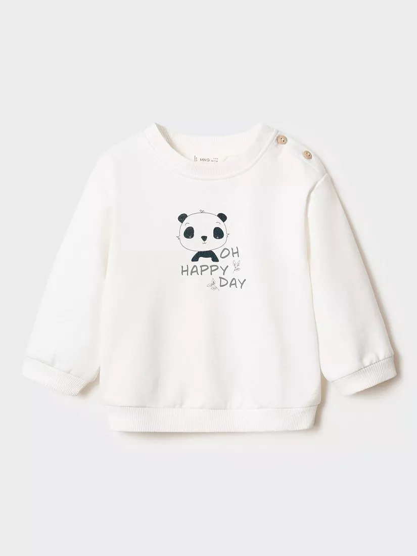 MangoBaby Panda Sweatshirt, Natural White