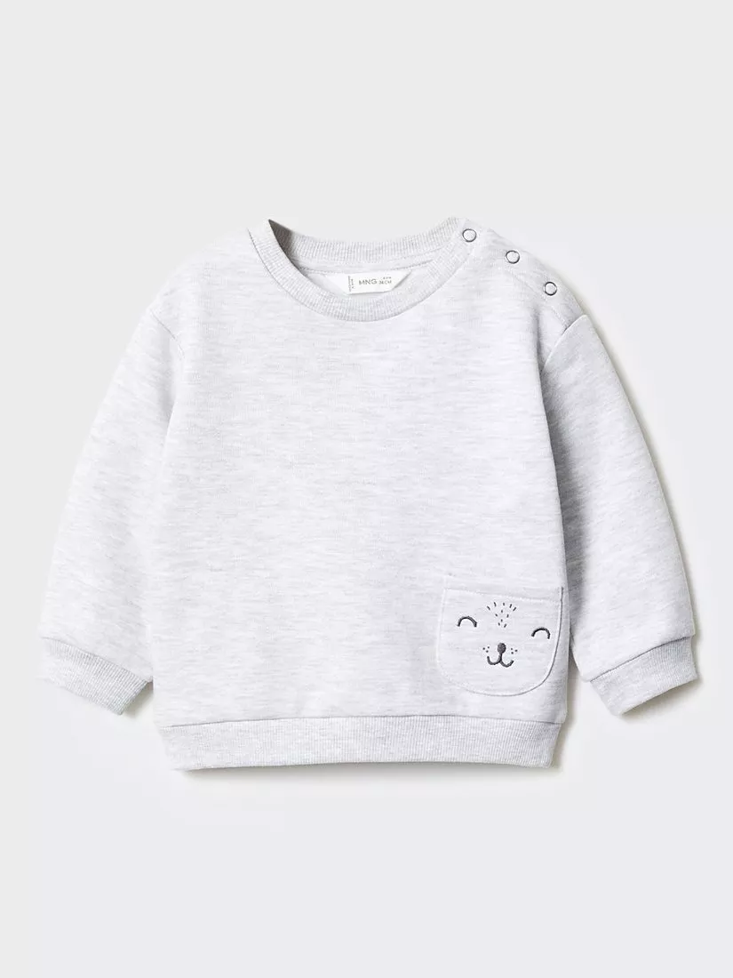 Soft cotton-blend sweatshirt from Mango in a straight design with cute cat embroidery on the pocket. Completed with a rounded neck, long sleeves and easy popper button fastenings on the shoulder.