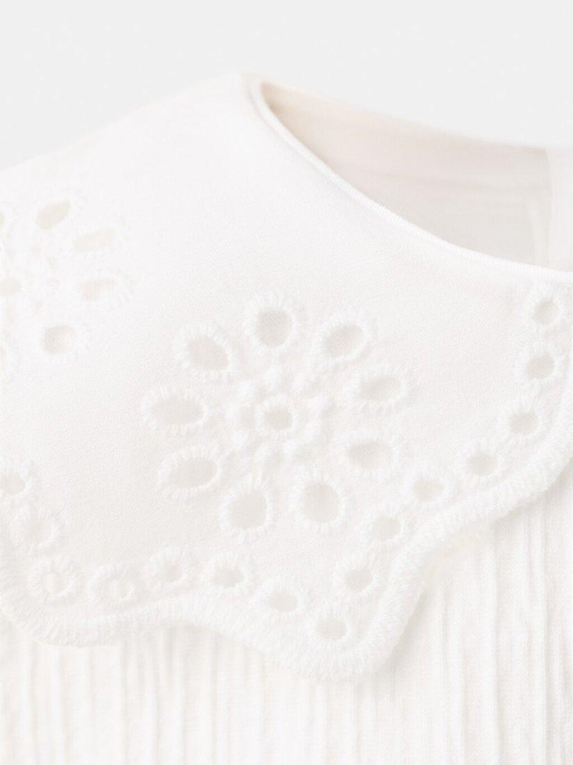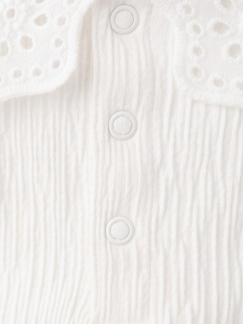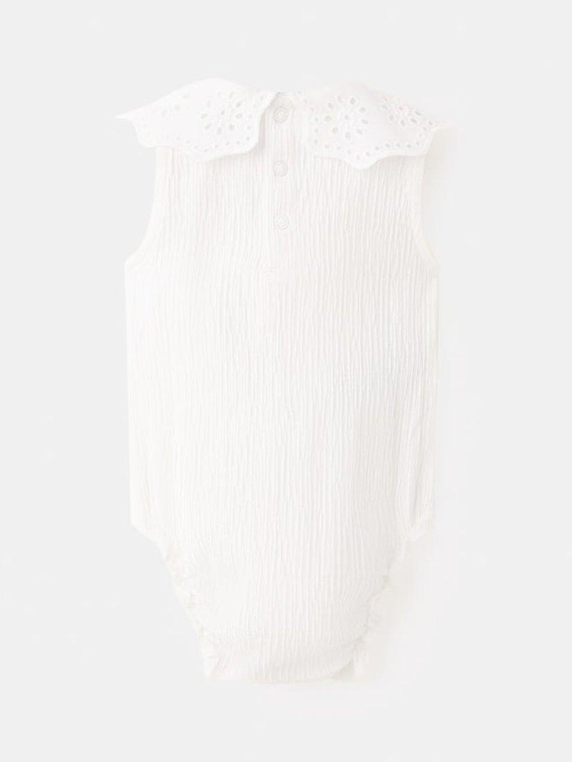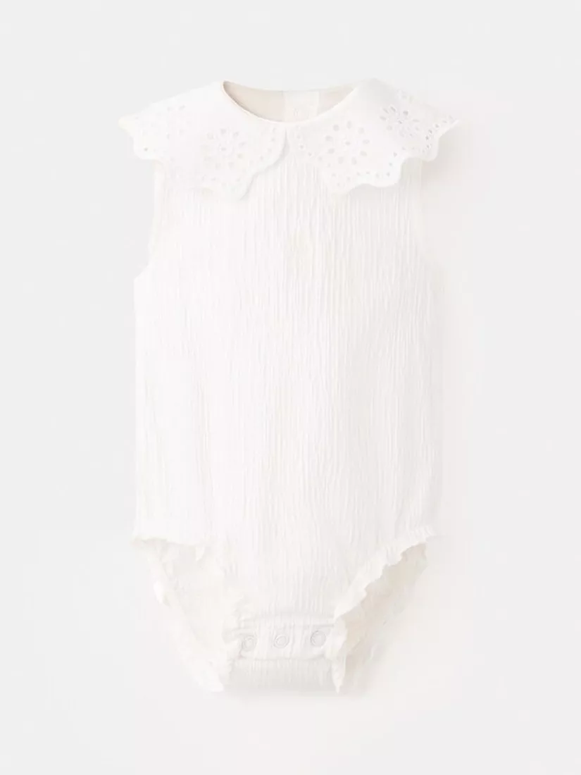 Soft cotton blend bodysuit with an airy eyelet collar and soft crinkle texture. Poppers make changing quick and easy, offering comfort for baby's delicate skin all day.
