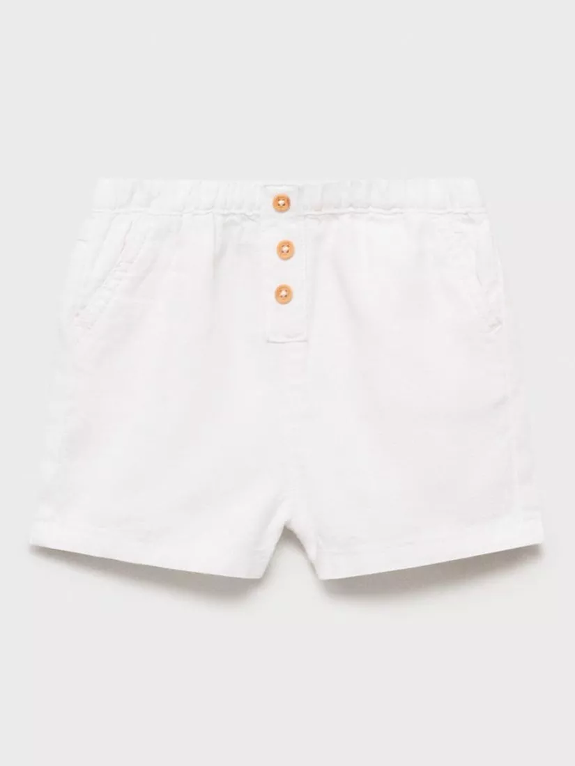 MangoBaby Sal Cotton Linen Button Shorts, White