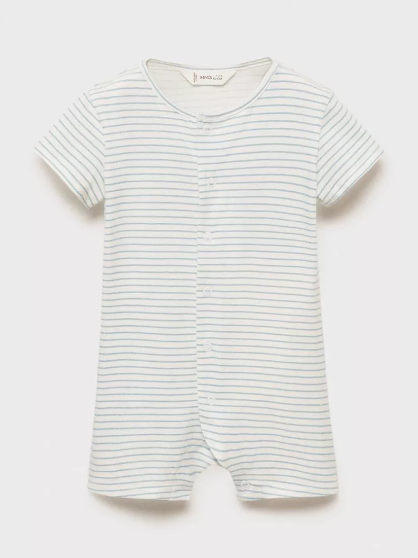 MangoBaby Stripe Shortie Sleepsuit, Medium Blue
