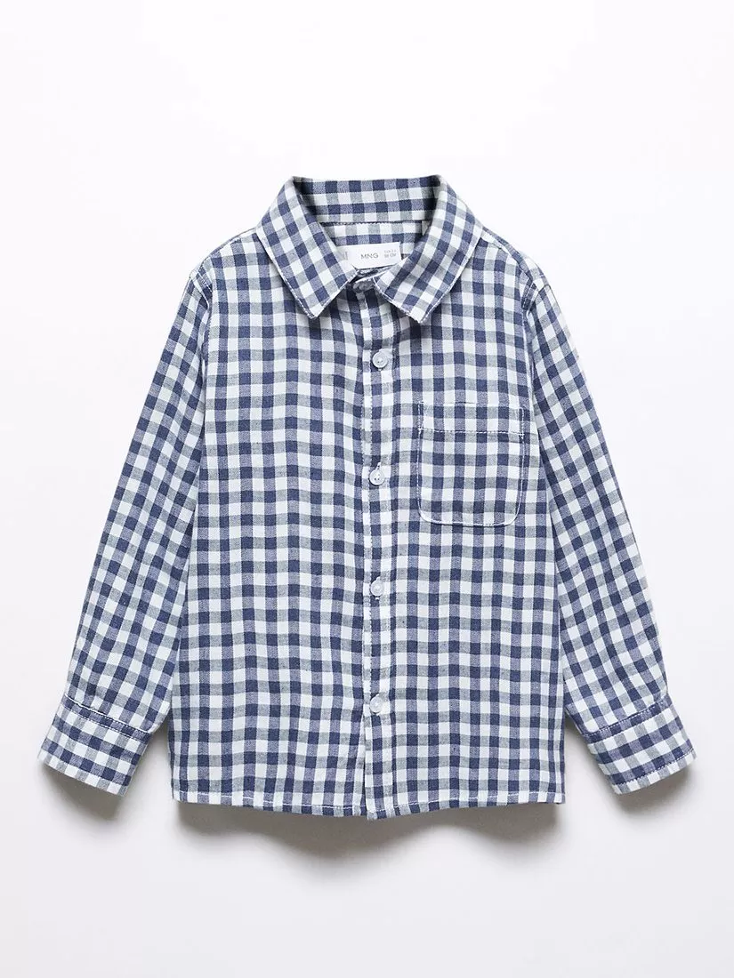 MangoBaby Theo Check Shirt, Light Pastel Blue