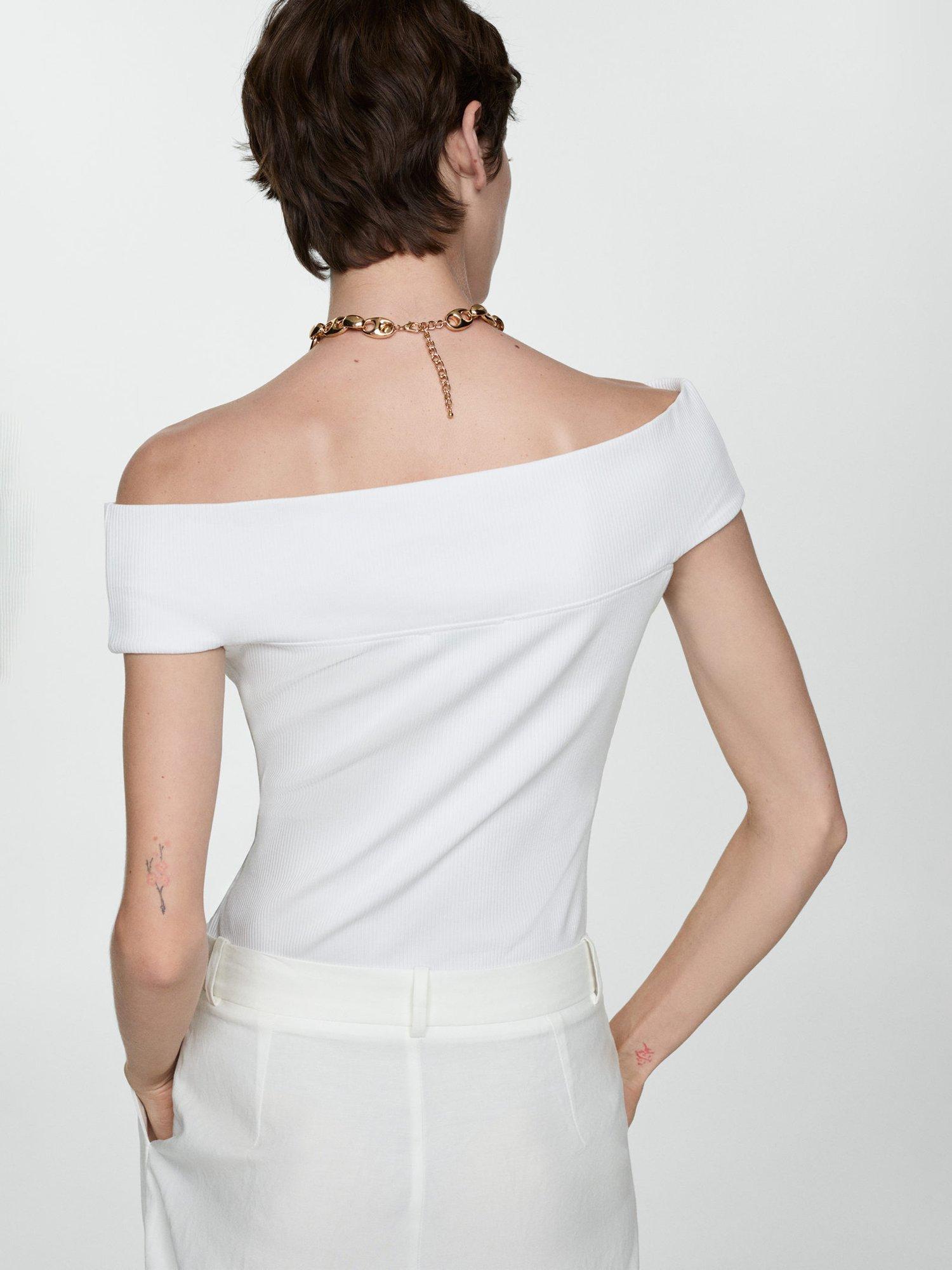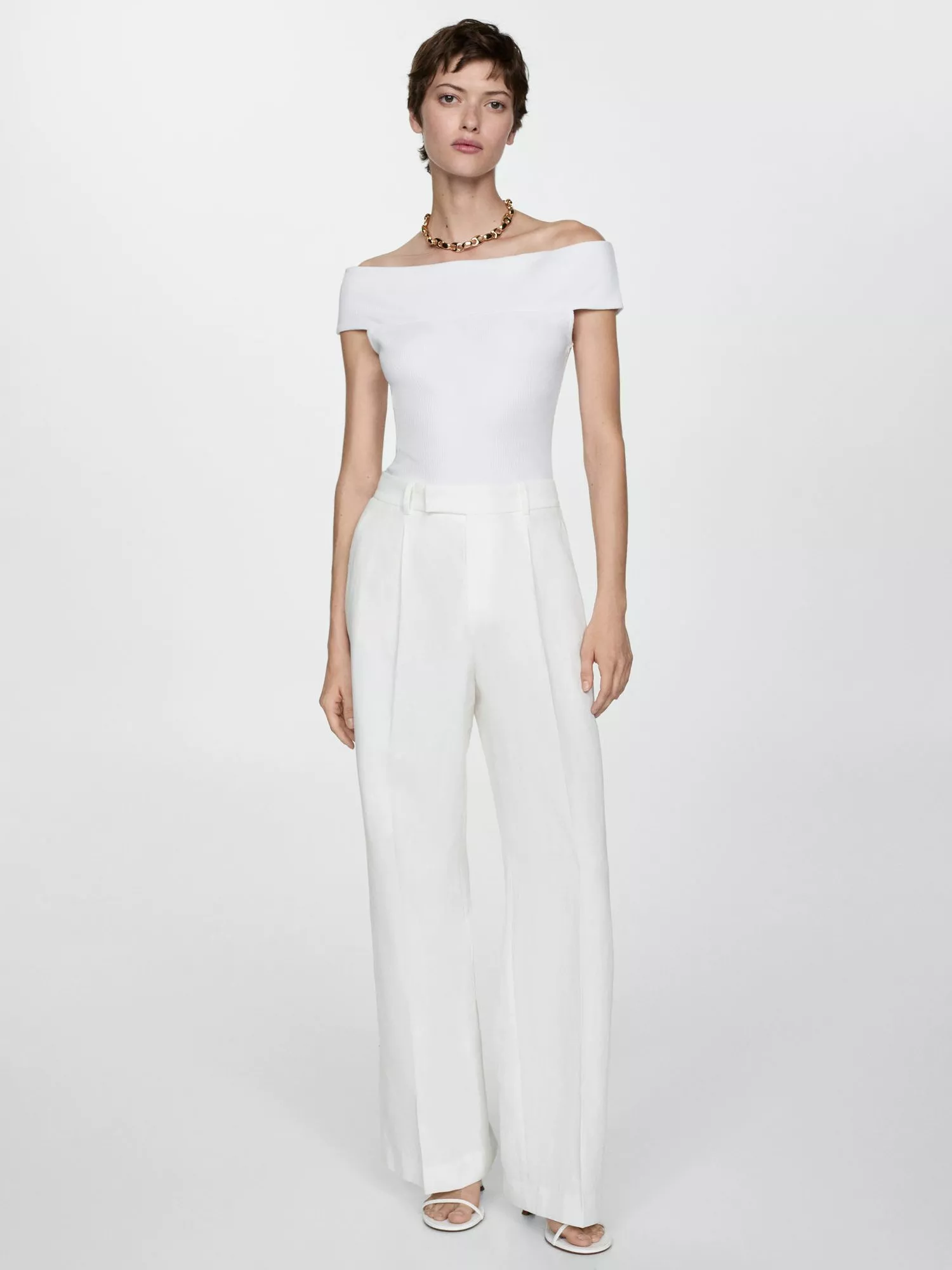 An all-year essential, this jersey top by Mango will give your wardrobe the refresh it needs. Exposing the shoulders with a dramatic Bardot neckline and short sleeves, it offers a soft feel thanks to its cotton blend and pairs effortlessly with floaty summery skirts for warm days spent with good friends.