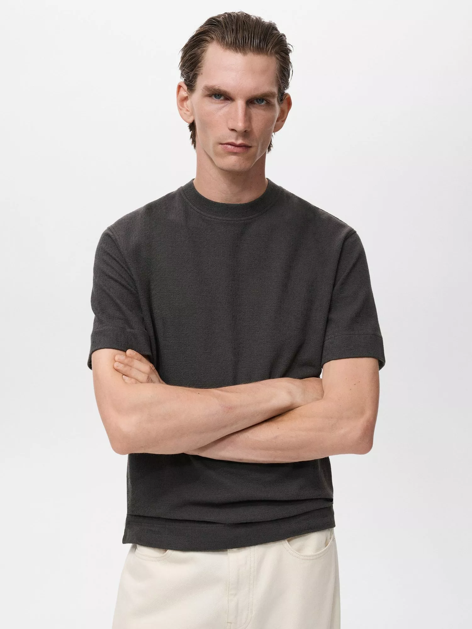This Mango T-shirt makes every day smoother. Its clever stretch keeps you moving, while the classic crew neck pairs with anything.