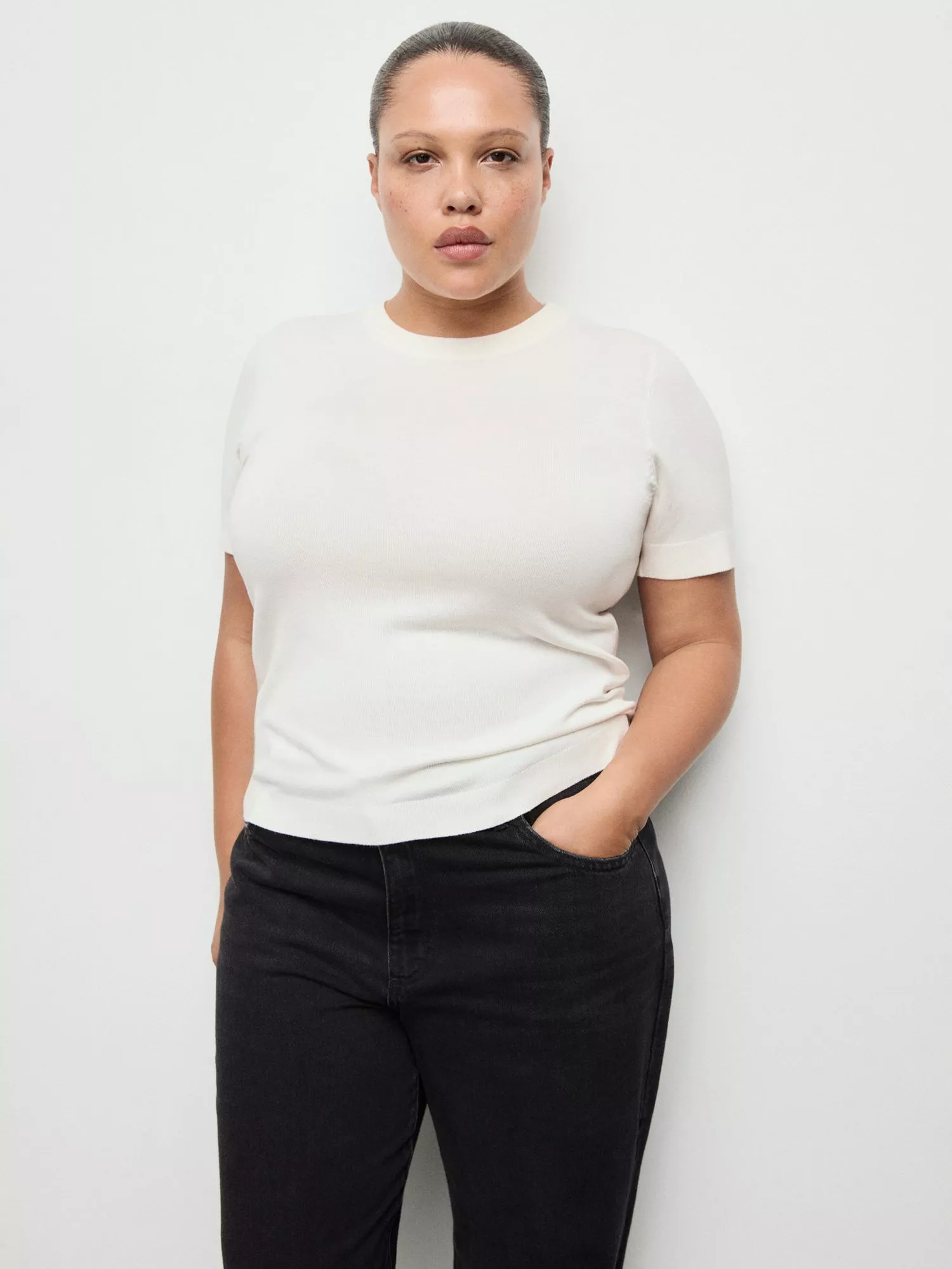 A comfortable short-sleeved jumper by Mango. The viscose blend keeps you cool, while the short sleeves and crew neck make it simple to style for work or weekends. Perfect for layering or wearing solo.