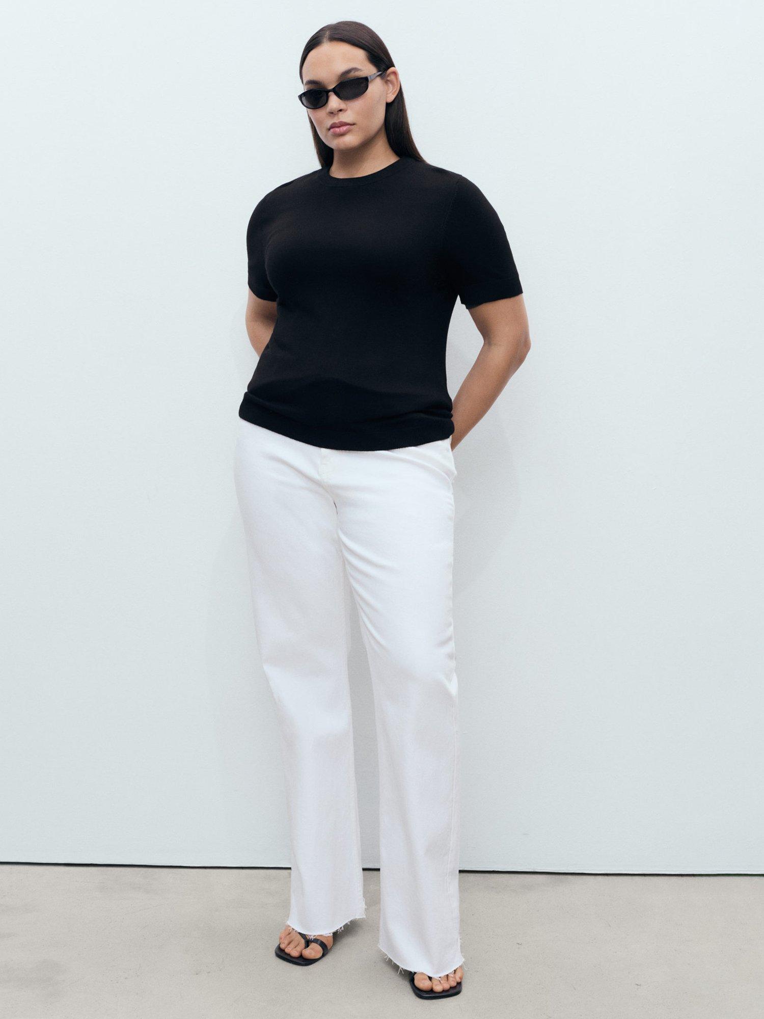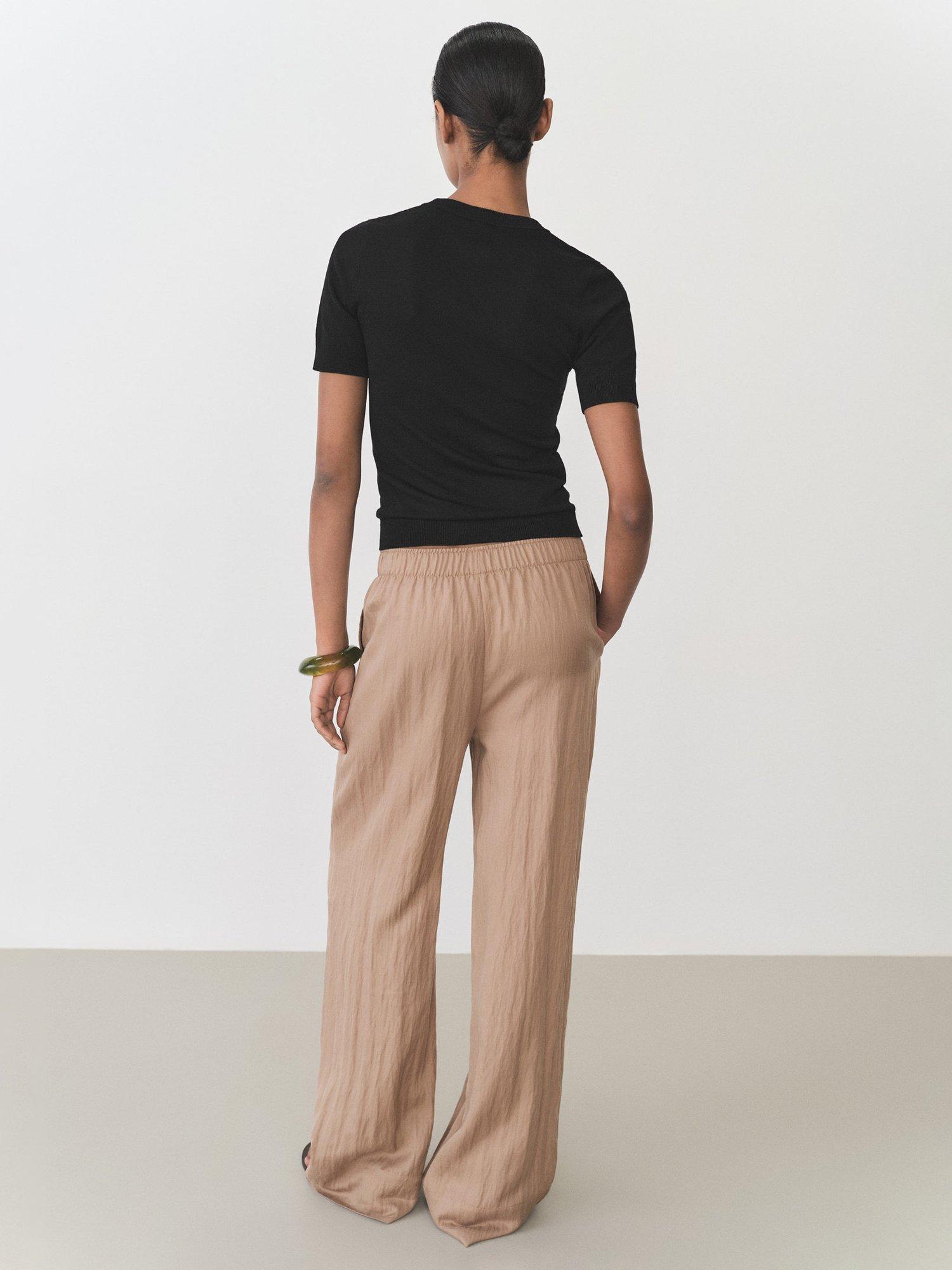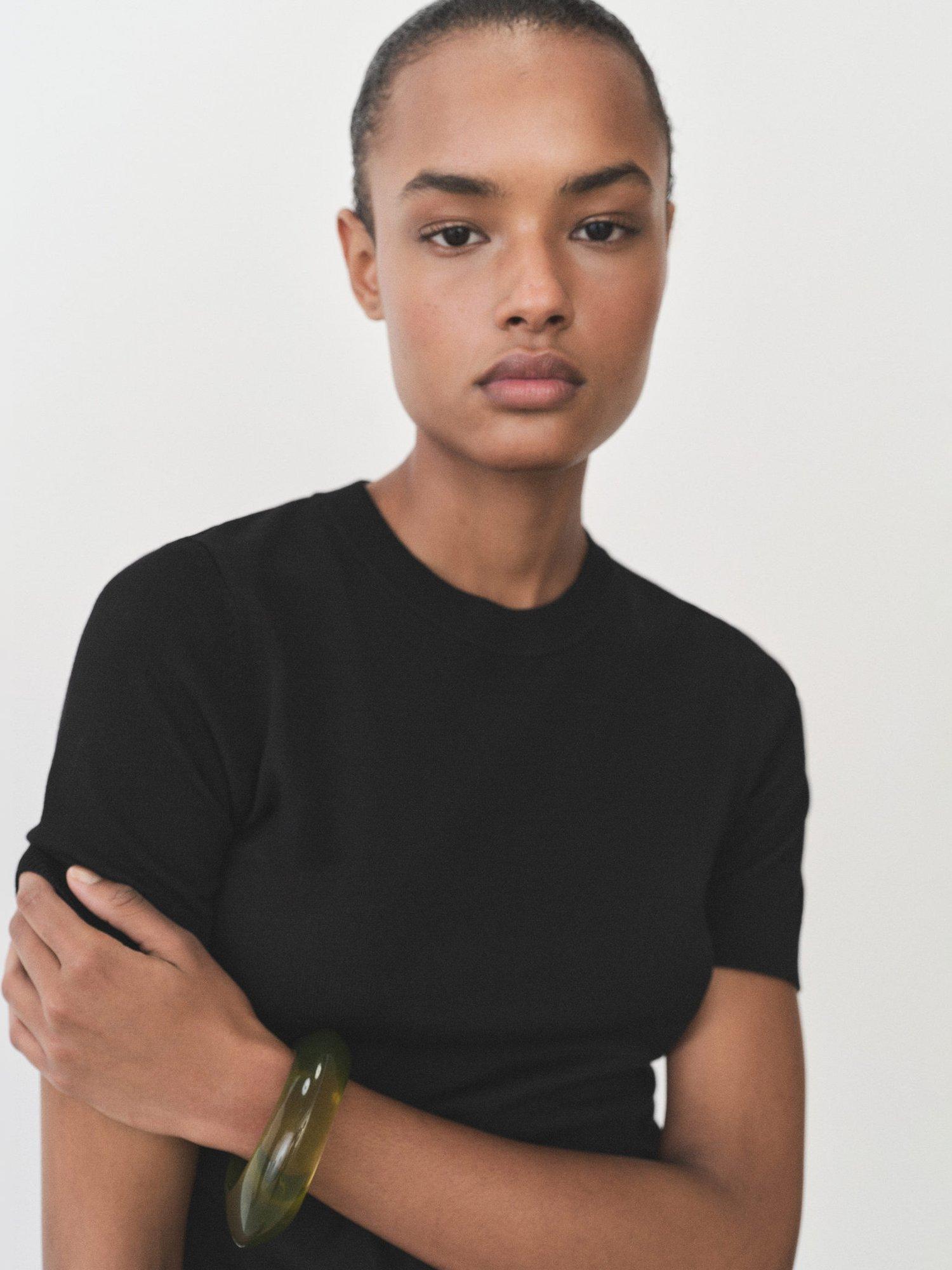 This fine knit short sleeve knit top offers a sharp, neat silhouette with a smooth feel. Its breathable viscose blend keeps you comfortable, making it a versatile choice for work or relaxed days out.