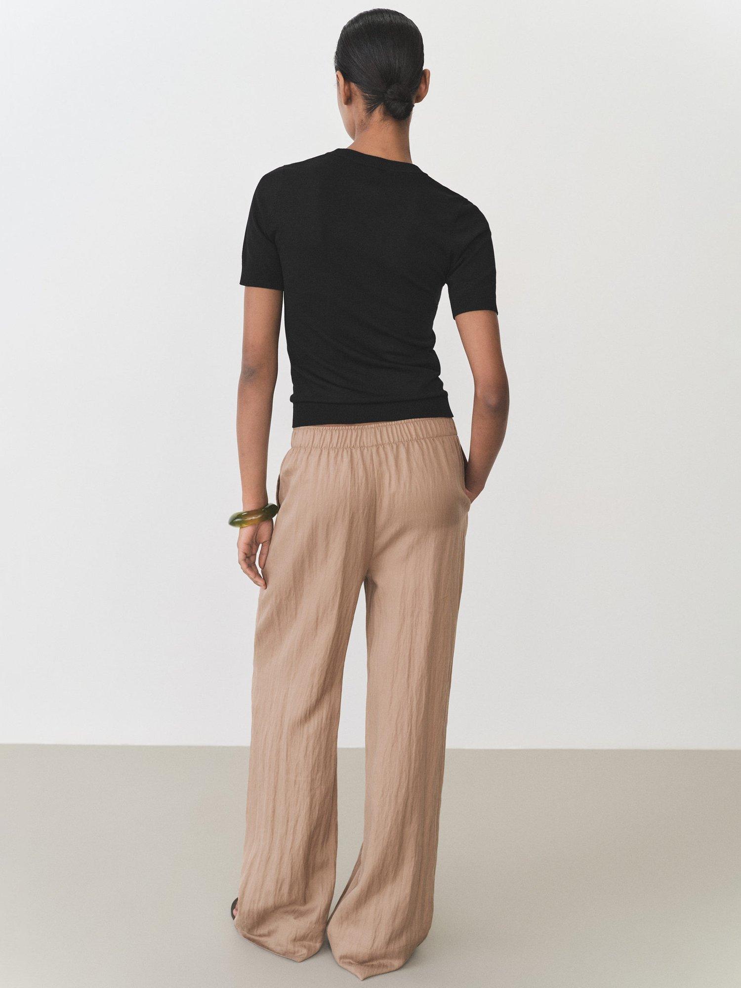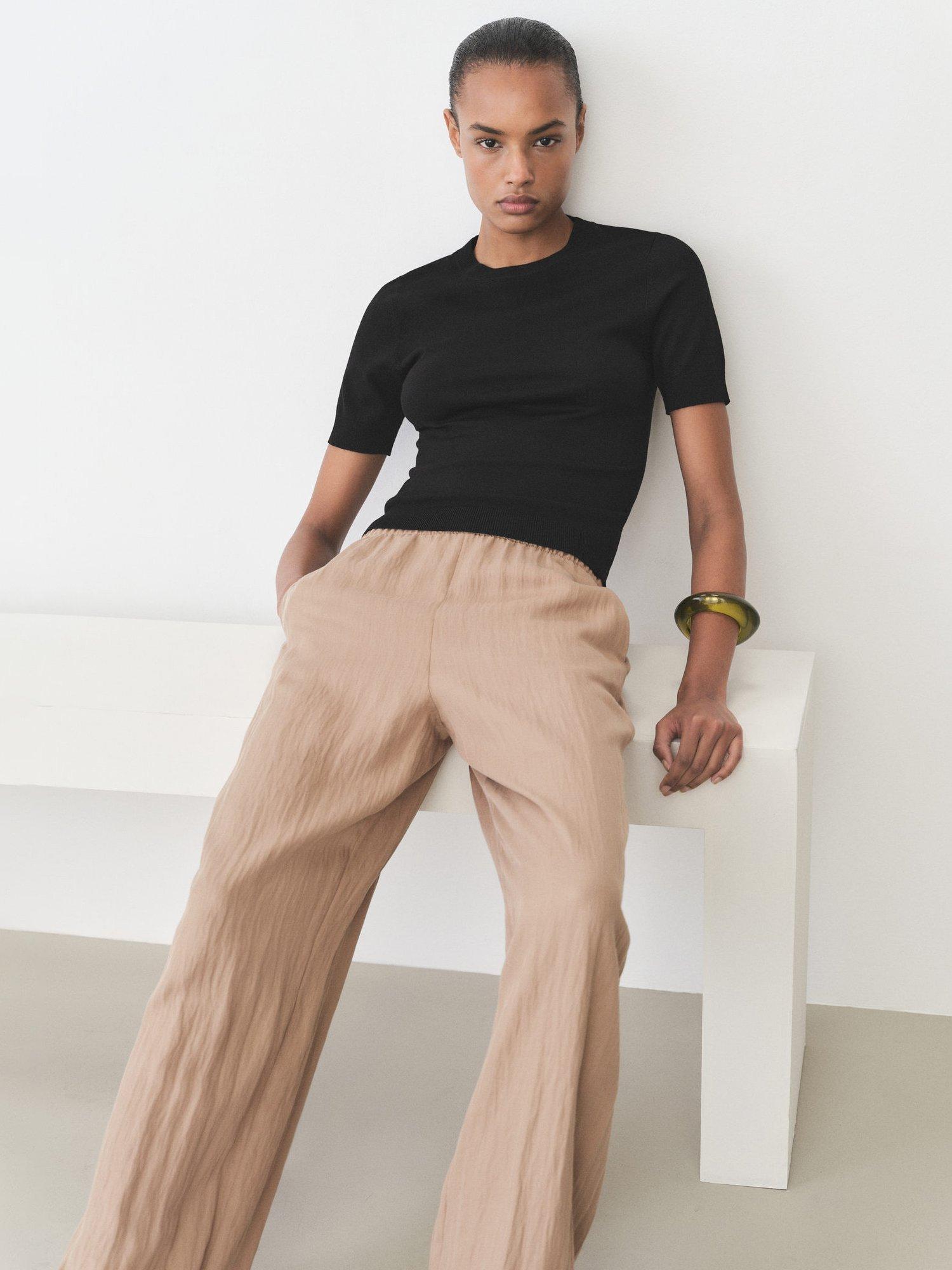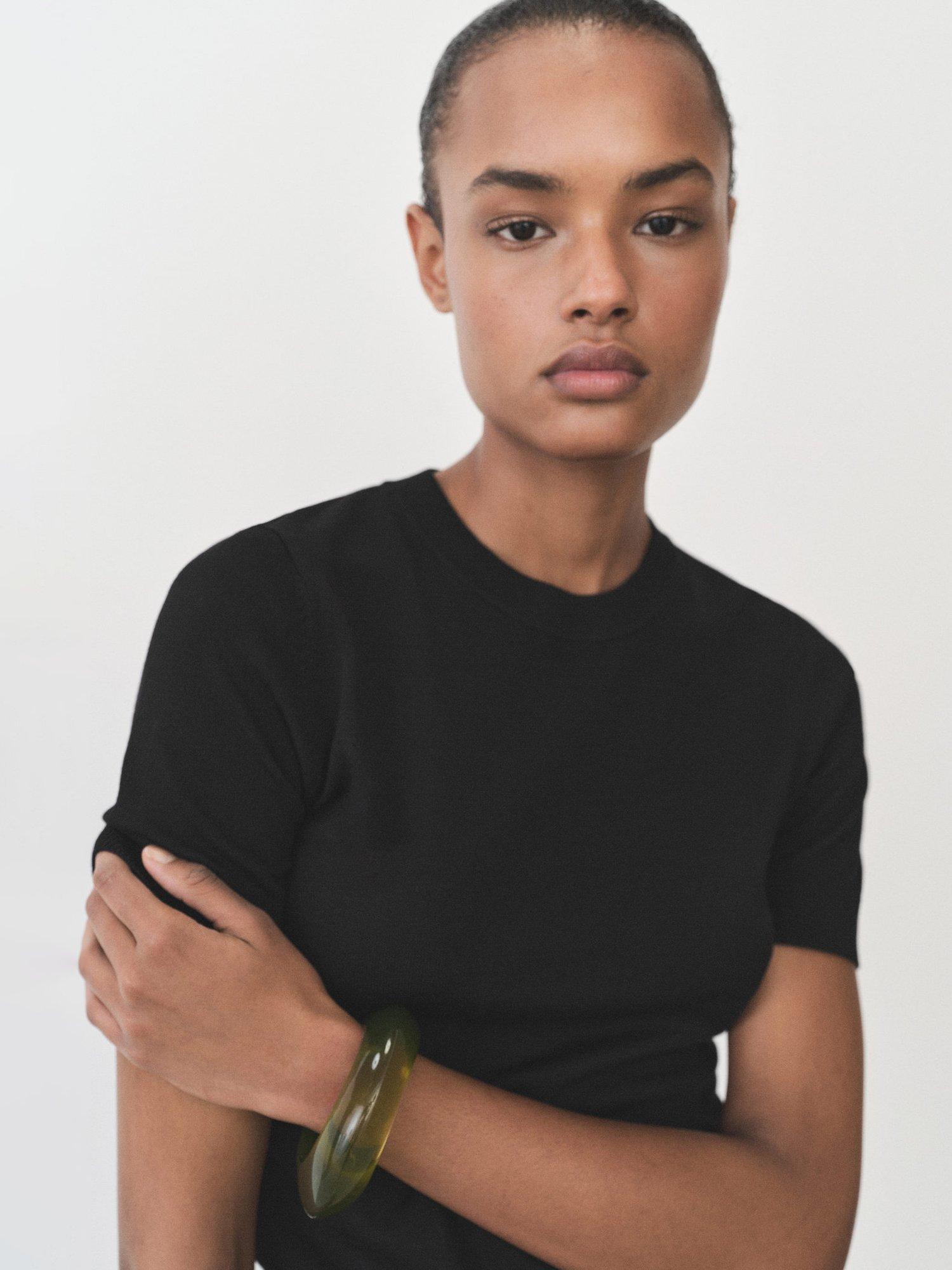 Cut with a crew neck and short sleeves, this slim fit knit top from Mango has chilled temperatures taken care of.
