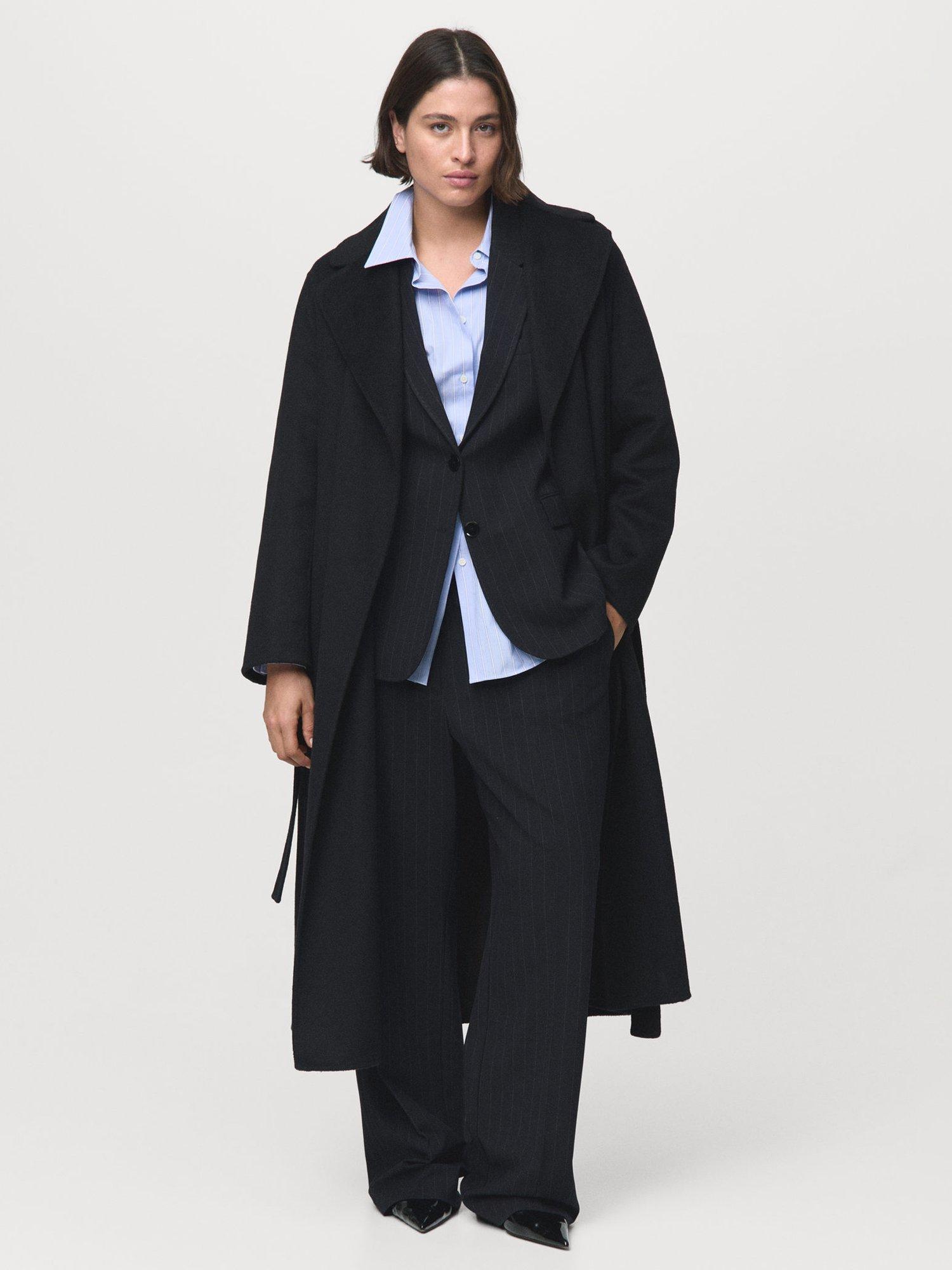 MangoBatin Belted Wool Blend Coat, Black