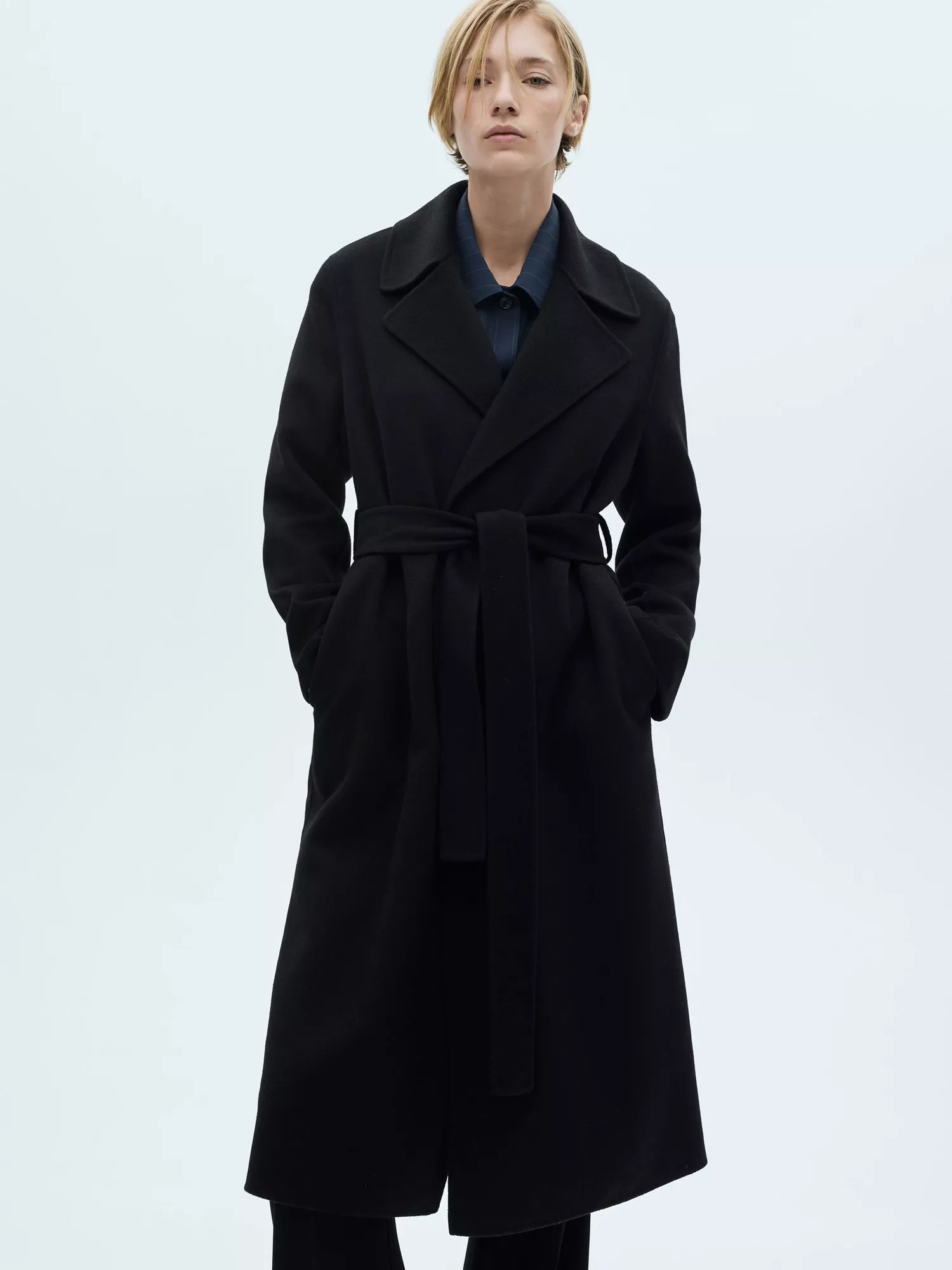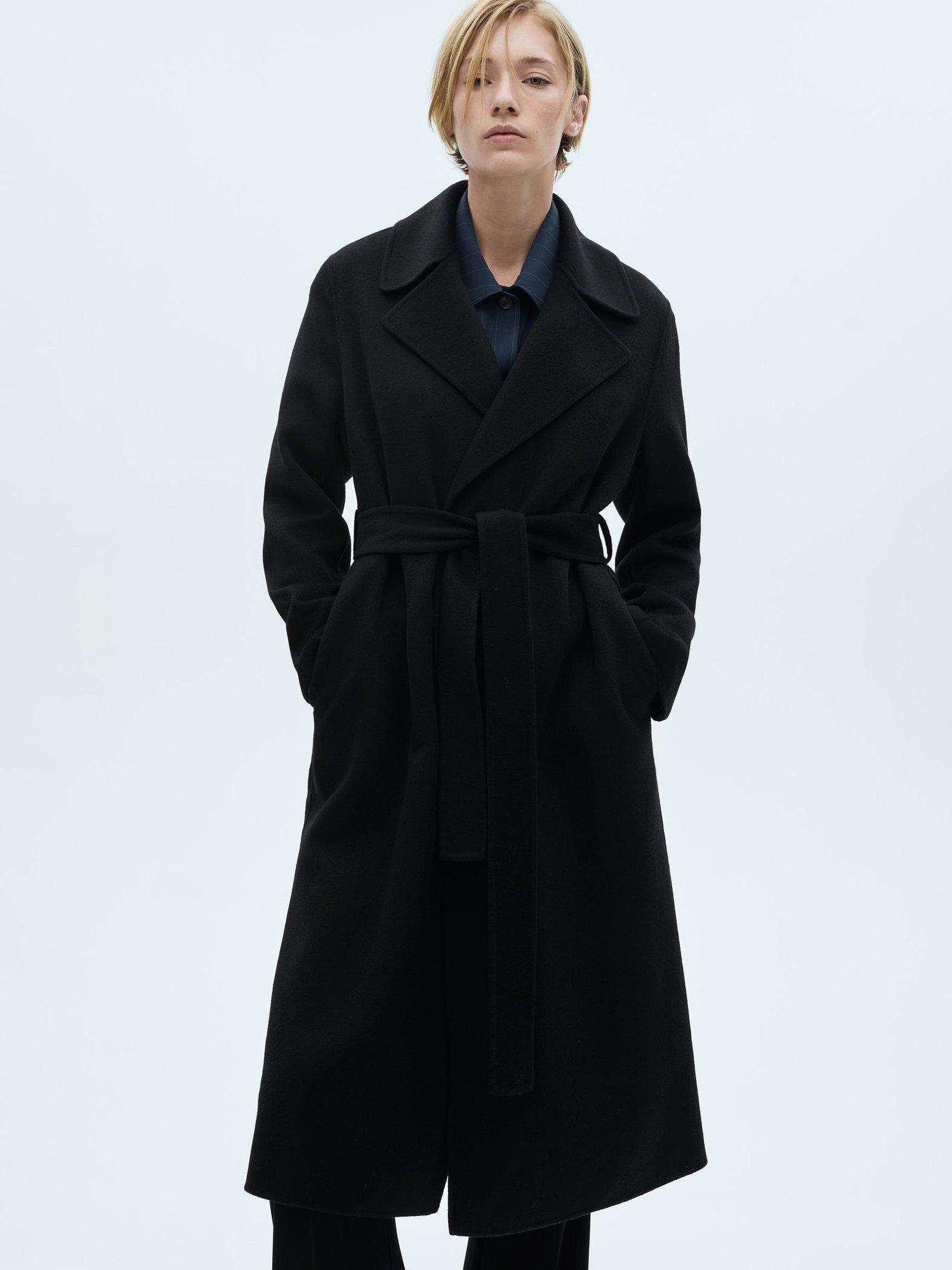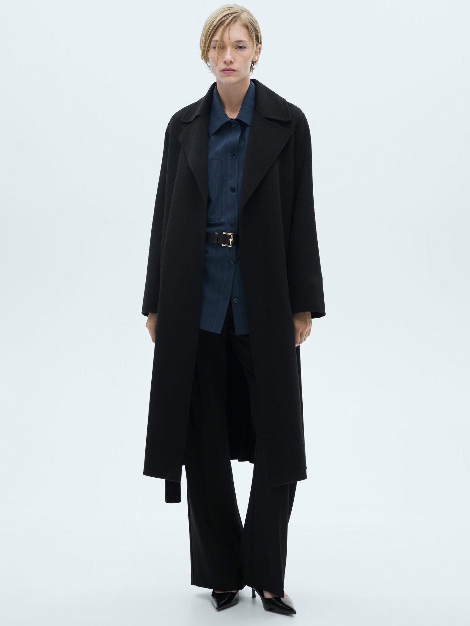 Celebrating minimalist silhouettes, this coat from Mango comes in a flattering longer length. Framed with lapels and a self-tie belt, it makes for a warming choice thanks to its wool blend fabric.