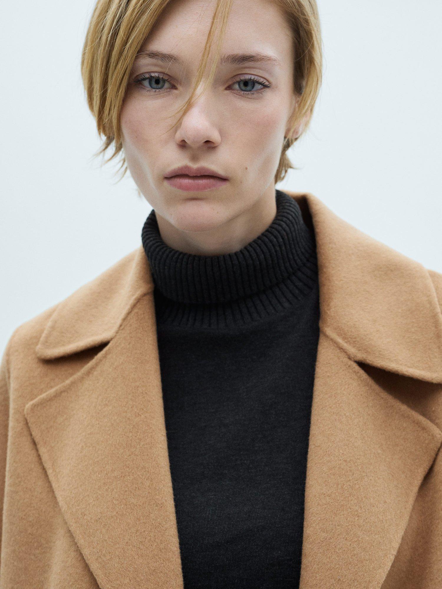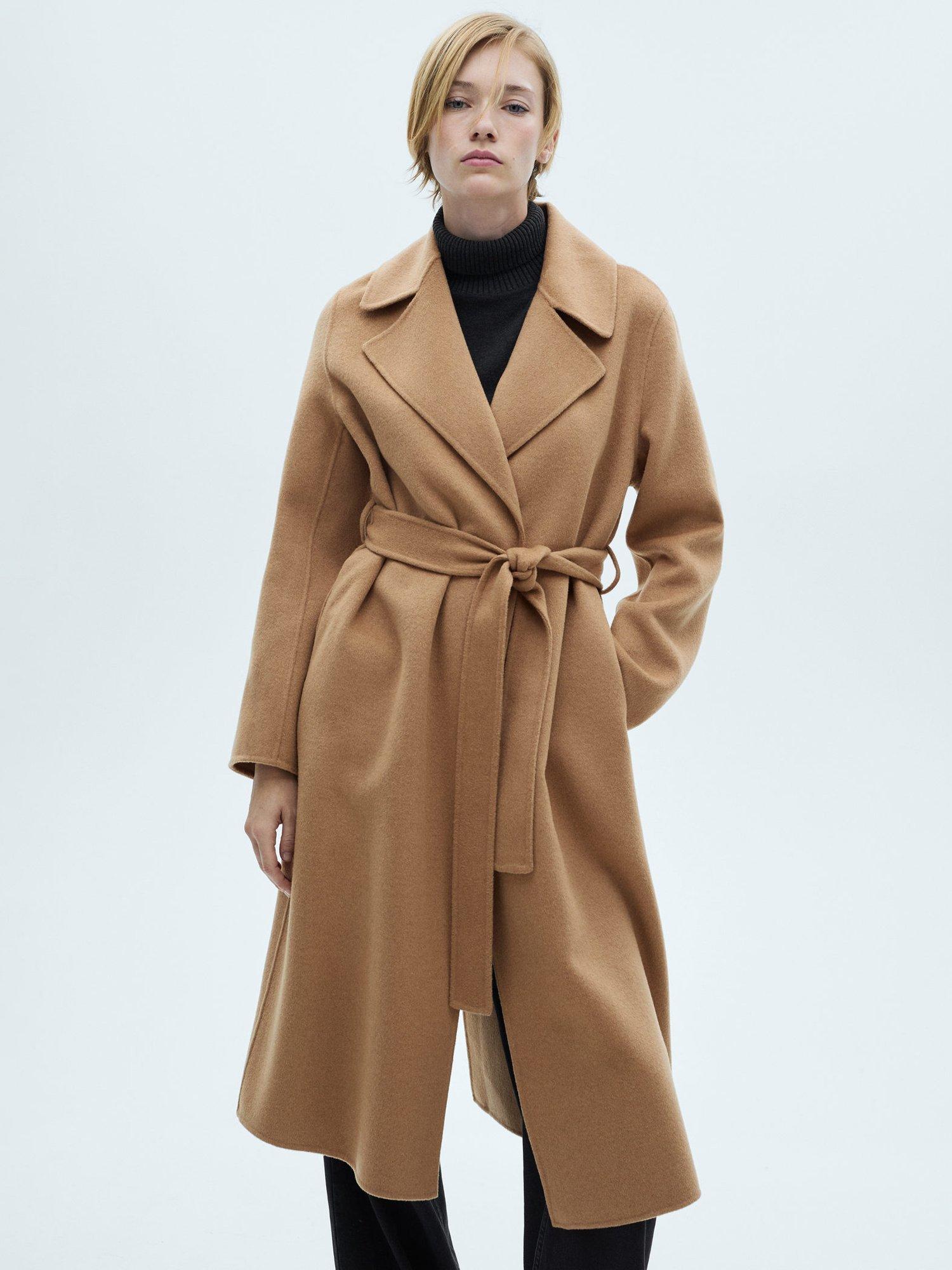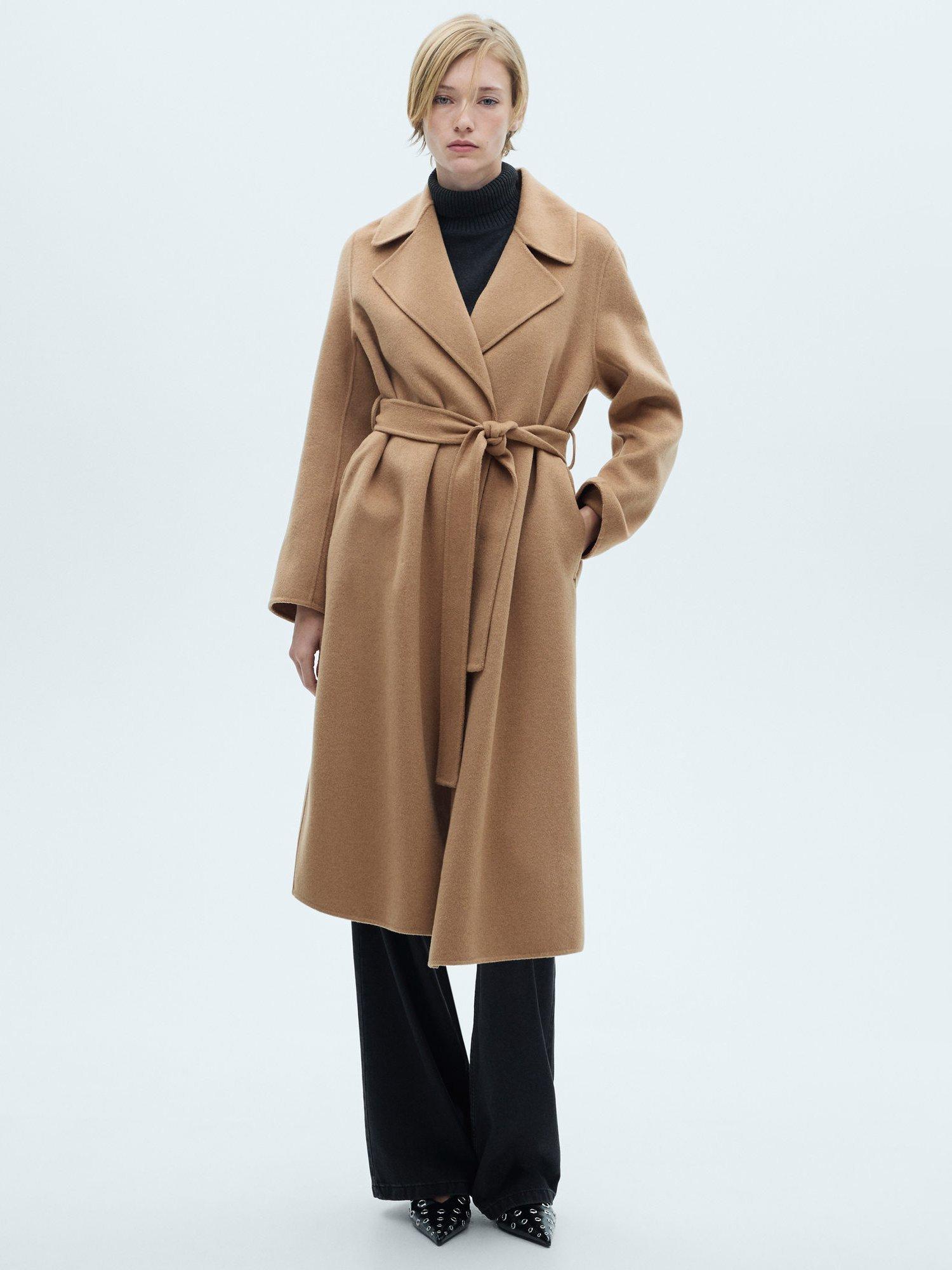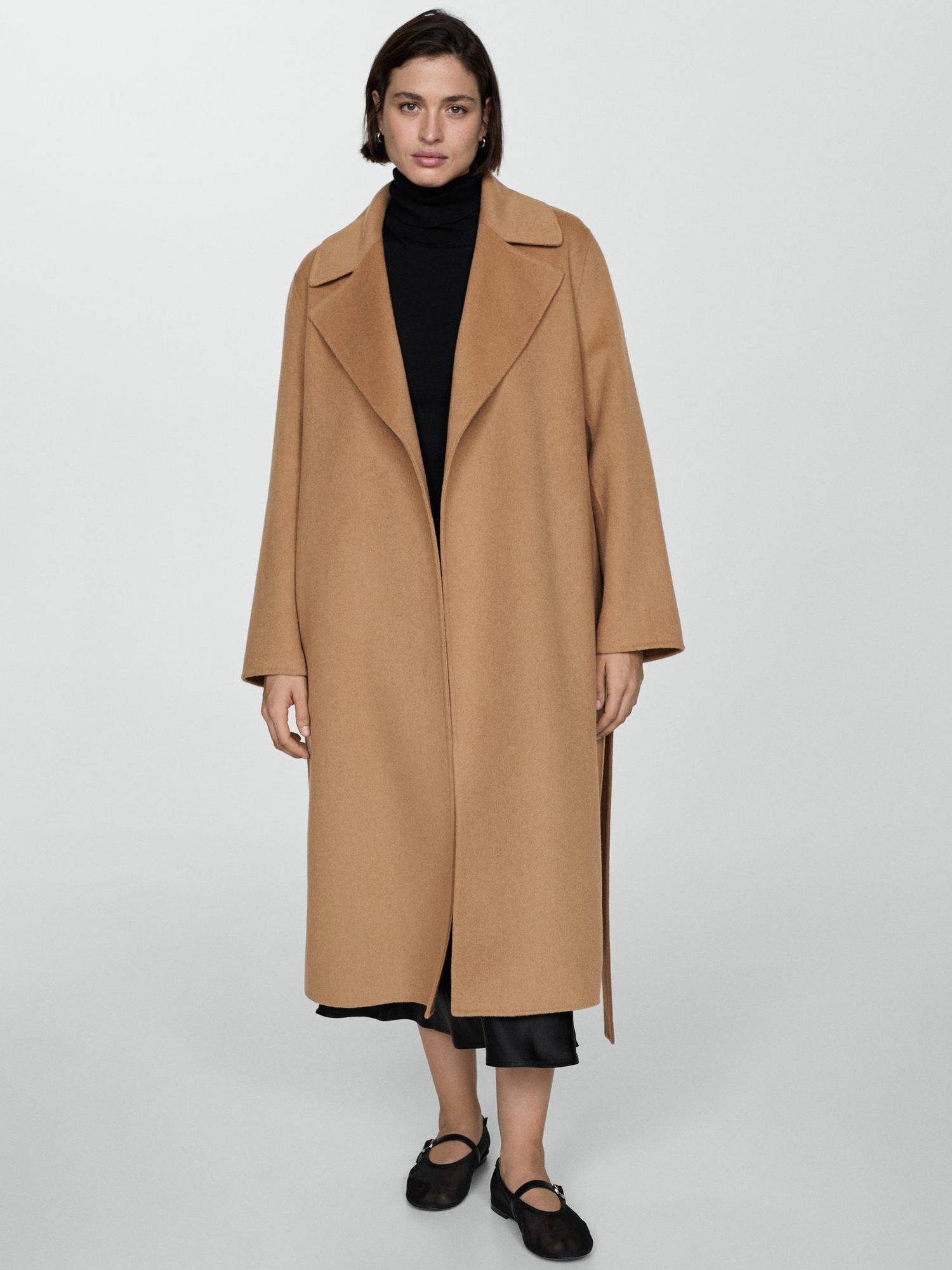 Celebrating minimalist silhouettes, this coat from Mango comes in a flattering longer length. Framed with lapels and a self-tie belt, it makes for a warming choice thanks to its wool blend fabric.
