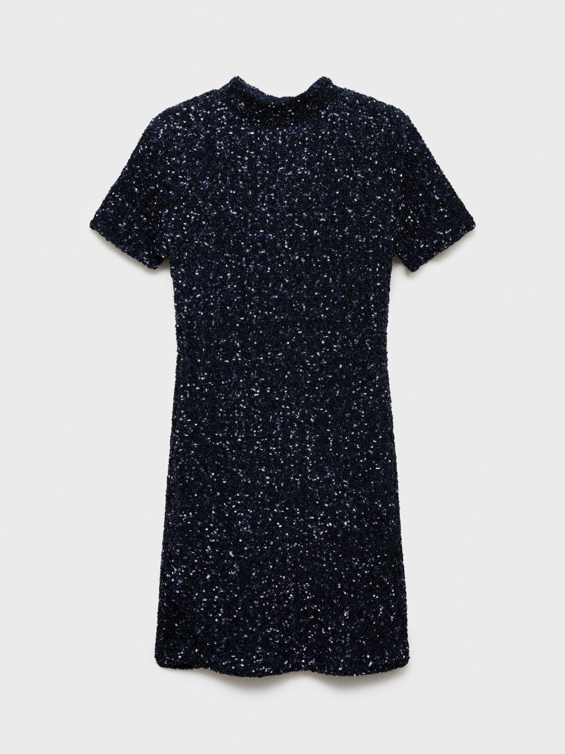 In a shape that skims close to your figure, this mini dress from Mango is crafted from a blend of fabrics. With a high neckline and short sleeves, this fitted style features all-over sequins for some sought after sparkle.