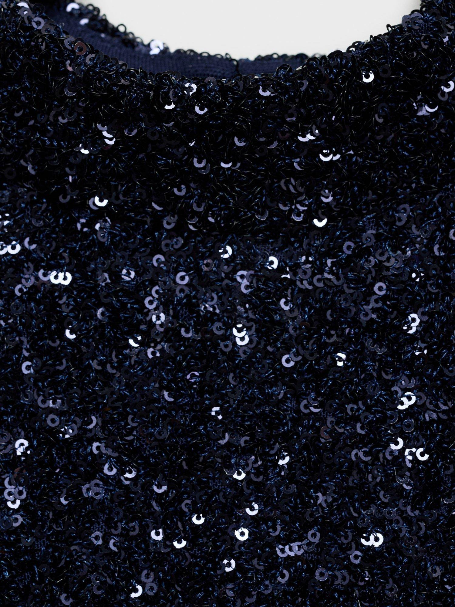 MangoBeijing Sequin Fitted Mini Dress, Dark Blue