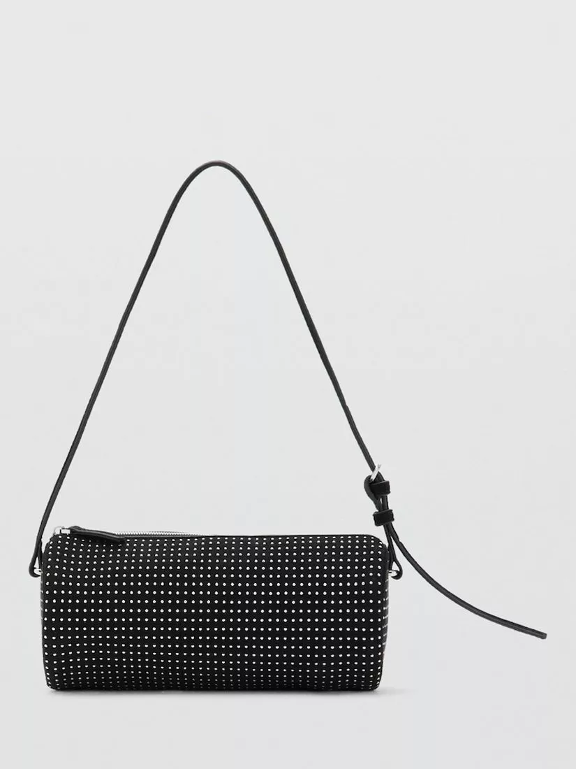 This oval stud-embellished shoulder bag keeps essentials secure with a zip closure and fully lined interior. With an adjustable strap, the textured suede-effect fabric will complement your daily schedule or a nights out with ease.
