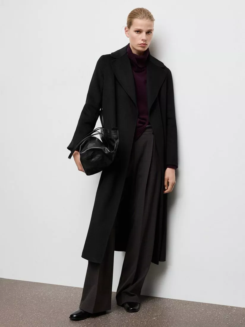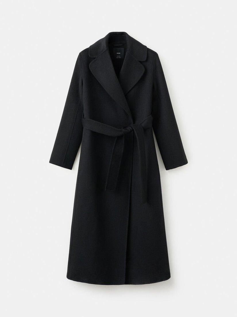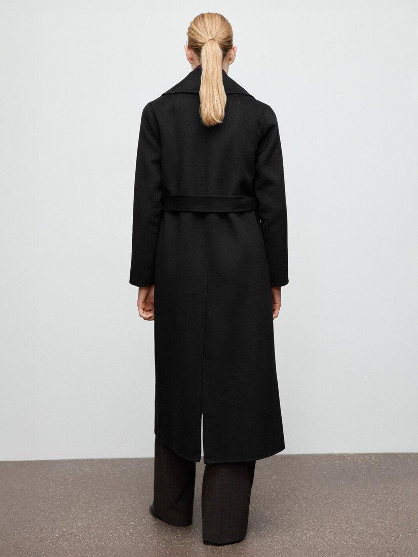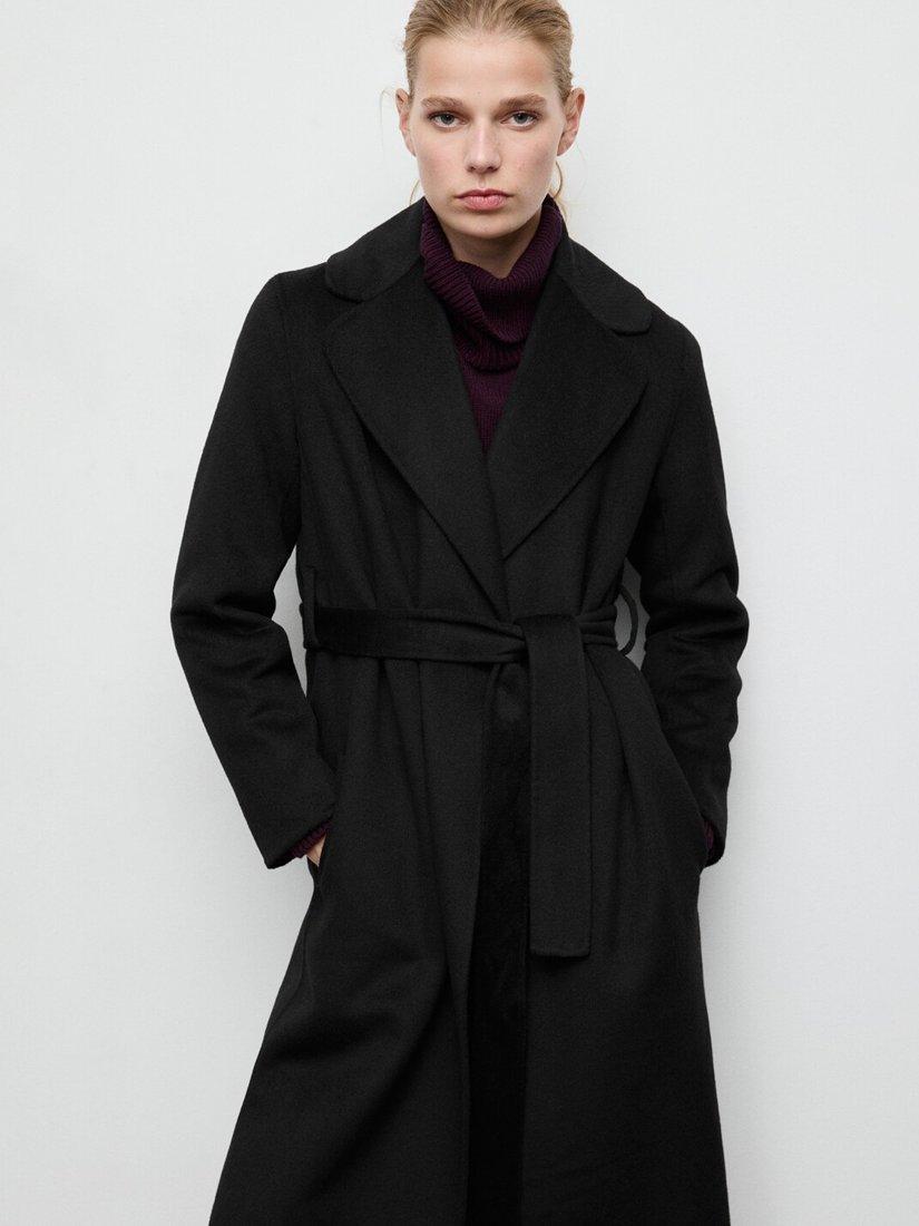 MangoBelted Longline Wool Blend Coat, Black