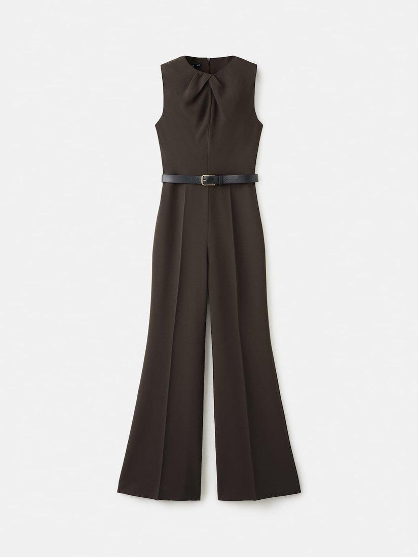 MangoBelted Sleeveless Wide Leg Jumpsuit, Brown