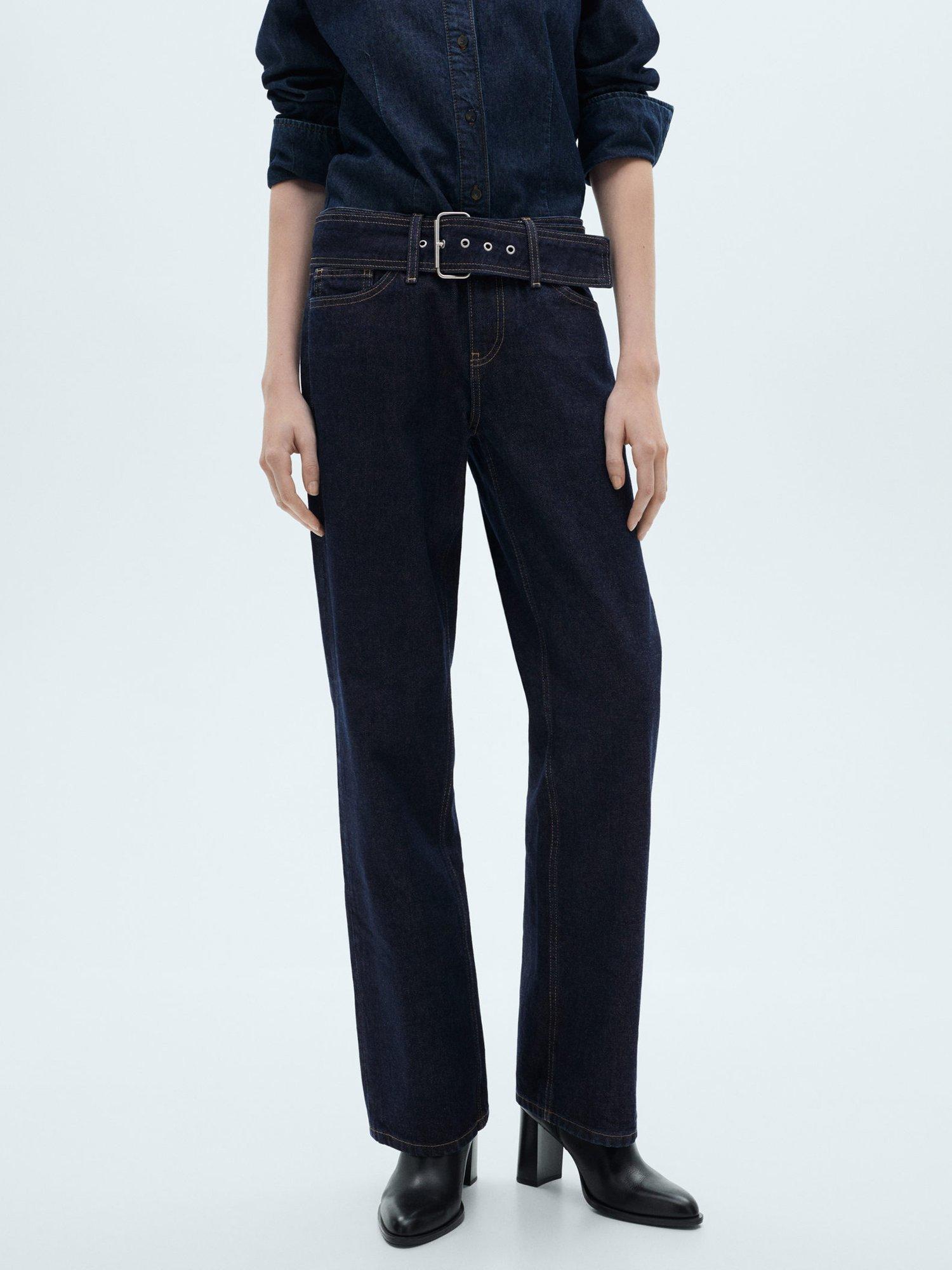Offering both comfort and ease with a straight-leg silhouette, these mid rise belted jeans from Mango are made from classic denim and finish at a regular length.
