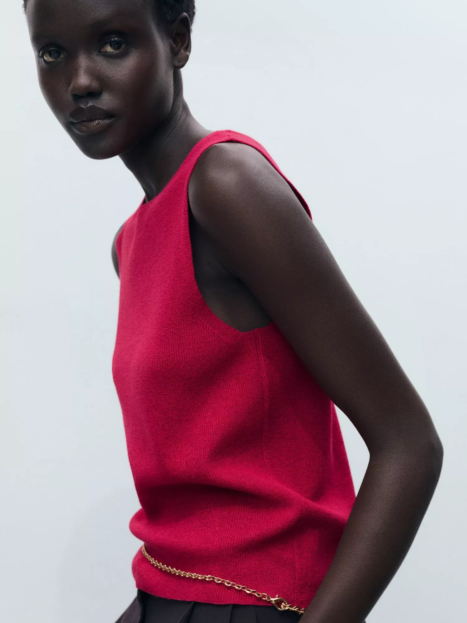 Effortlessly elevate your style with this top from Mango, crafted from a soft, fine knit and cut in a sleeveless design with a flattering round neckline.
