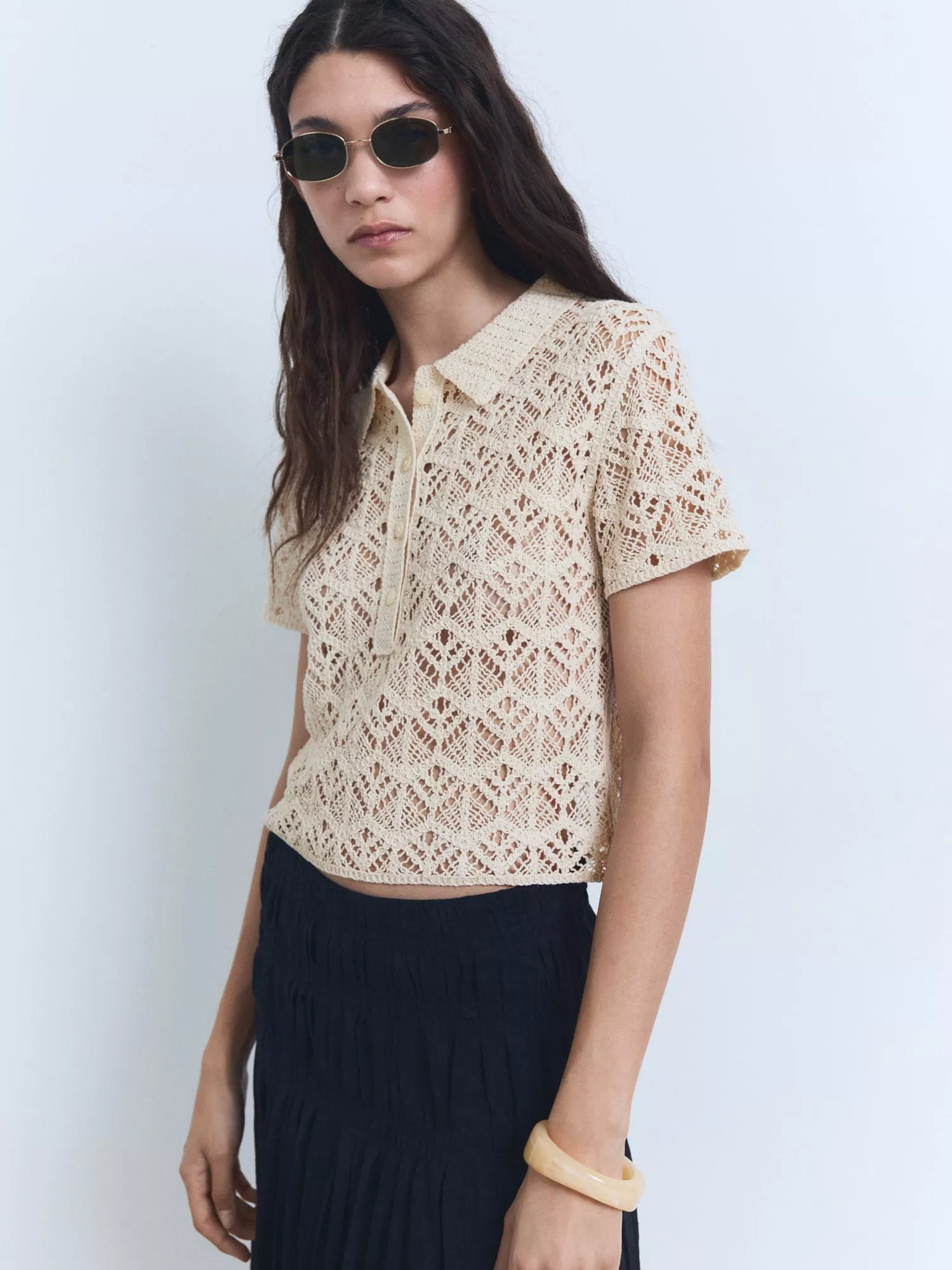 Reframing knitwear with a smart collar neckline and short sleeves, this crochet jumper from Mango is cut from a cotton-rich blend for durable comfort that lasts.